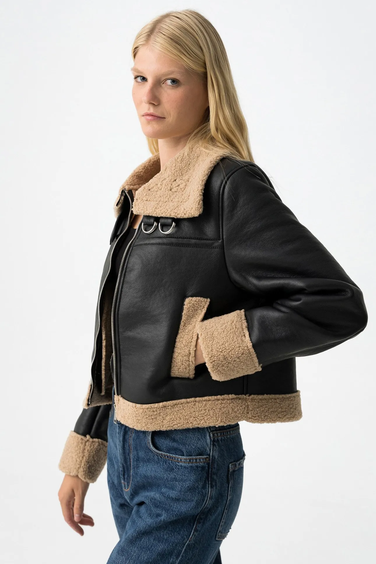 Abrigo con Efecto Piel Combinado