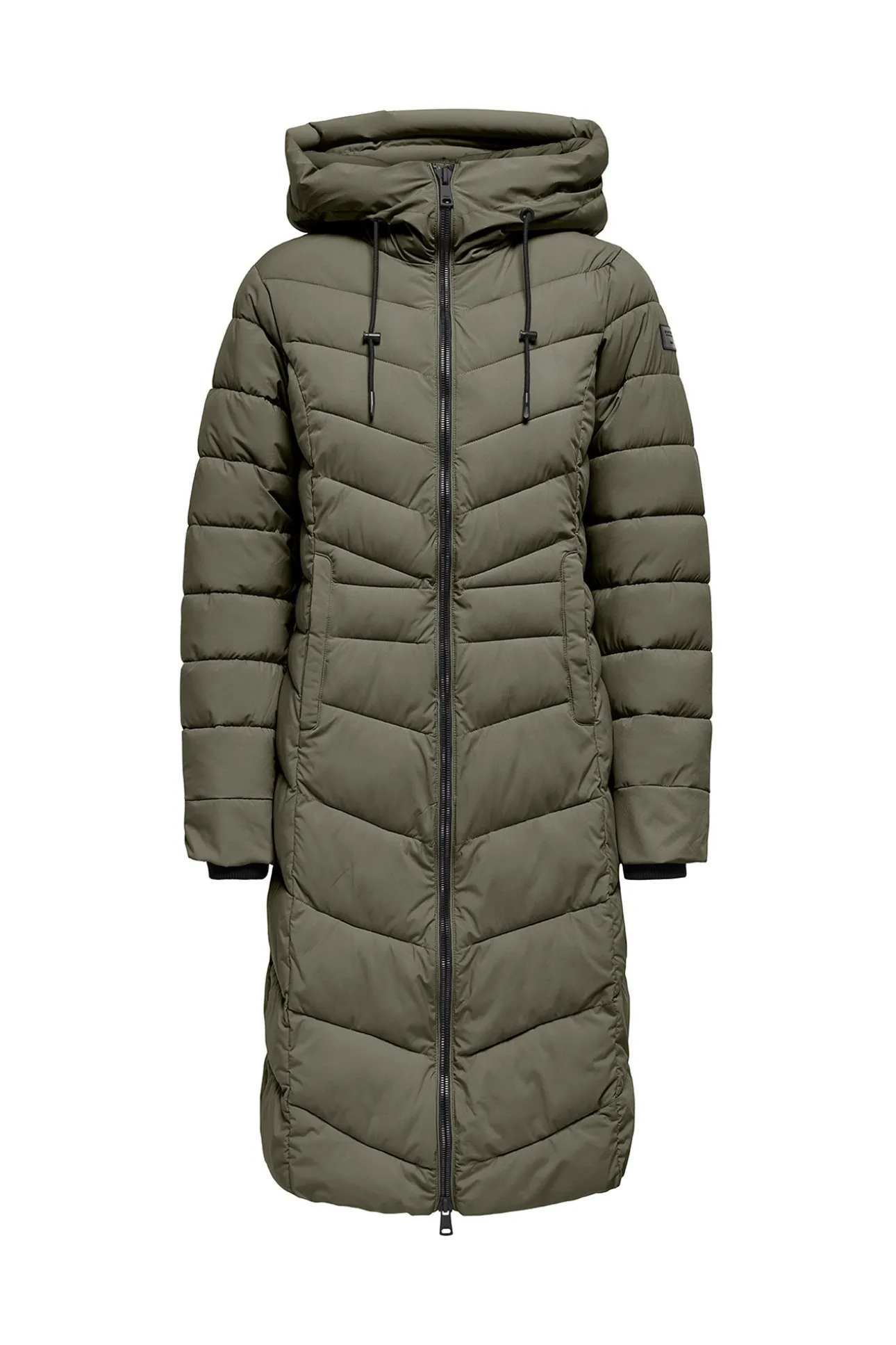 – Cuello alto con capucha regulable incorporada.
