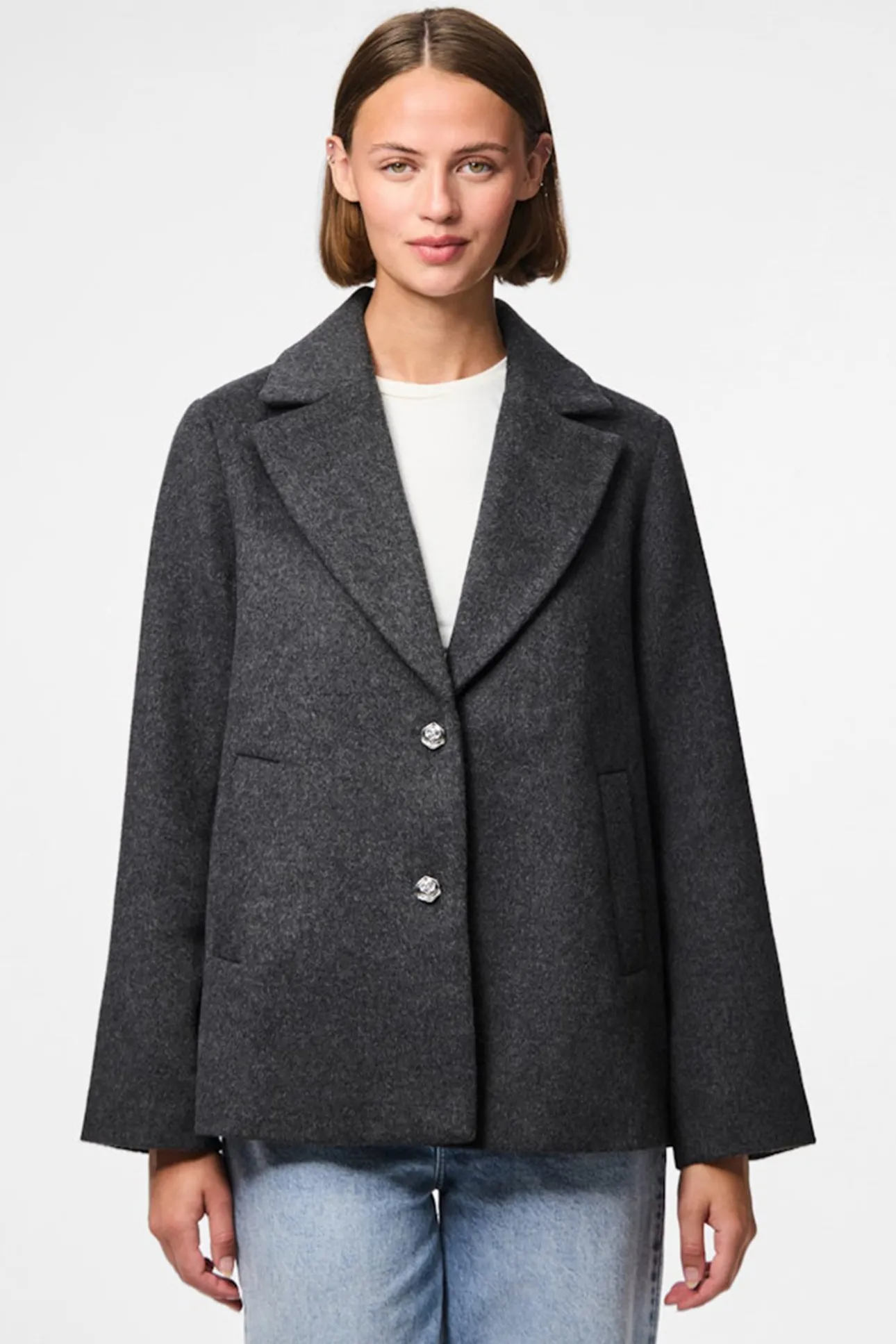 Abrigo paño corto botón flor