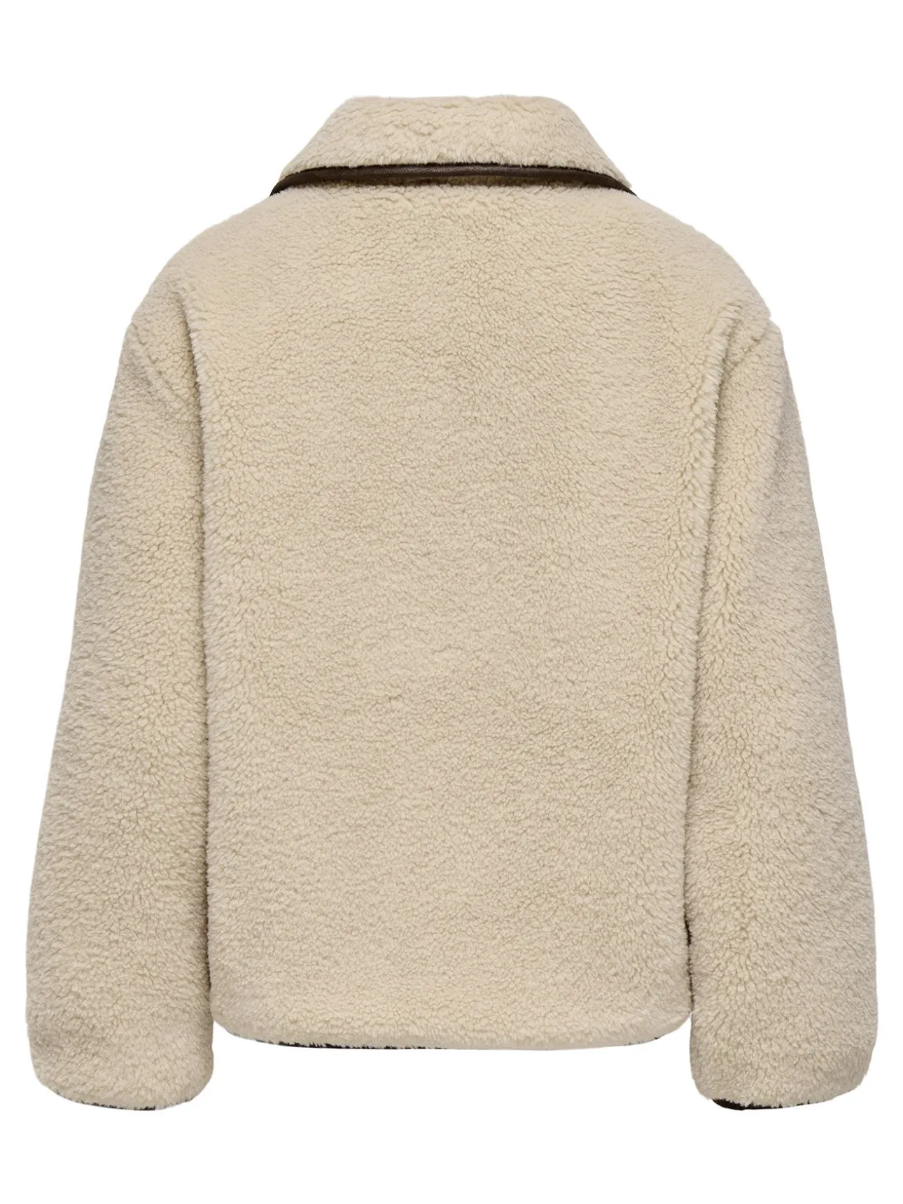 – Corte recto, cuello clásico, cierre de botones delantero y bolsillos delanteros.