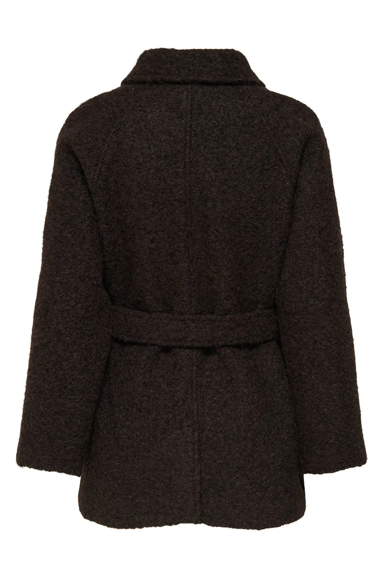 – Corte recto, cuello clásico, cierre de botones delantero, bolsillos laterales y cinturón ajustable.