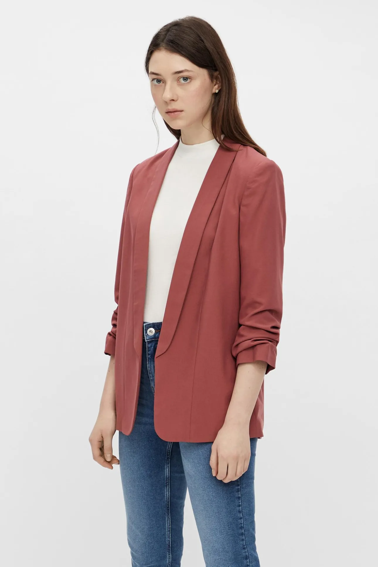 Americana manga 3/4 con detalle solapa y manga fruncida. Sin botones.