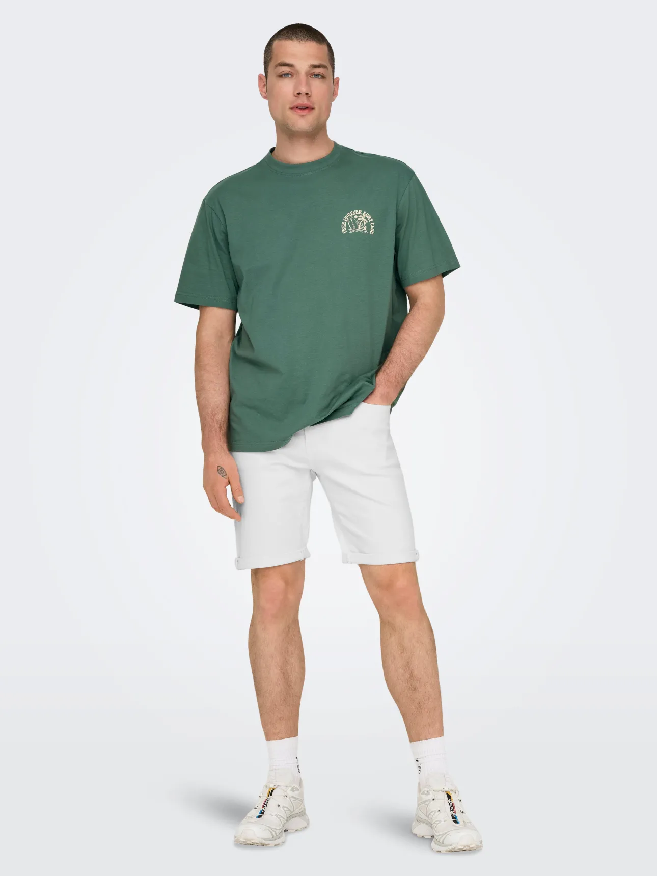 – Corte regular, cierre con botón y cremallera, bolsillos y trabillas para cinturón.