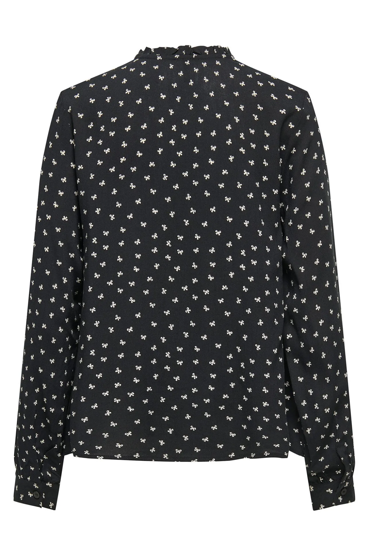 – Cuello mao con detalle de lazadas.
