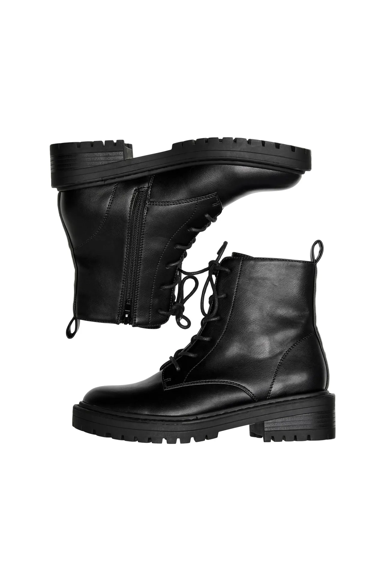– Cordones frontales decorativos y cierre lateral de cremallera.
