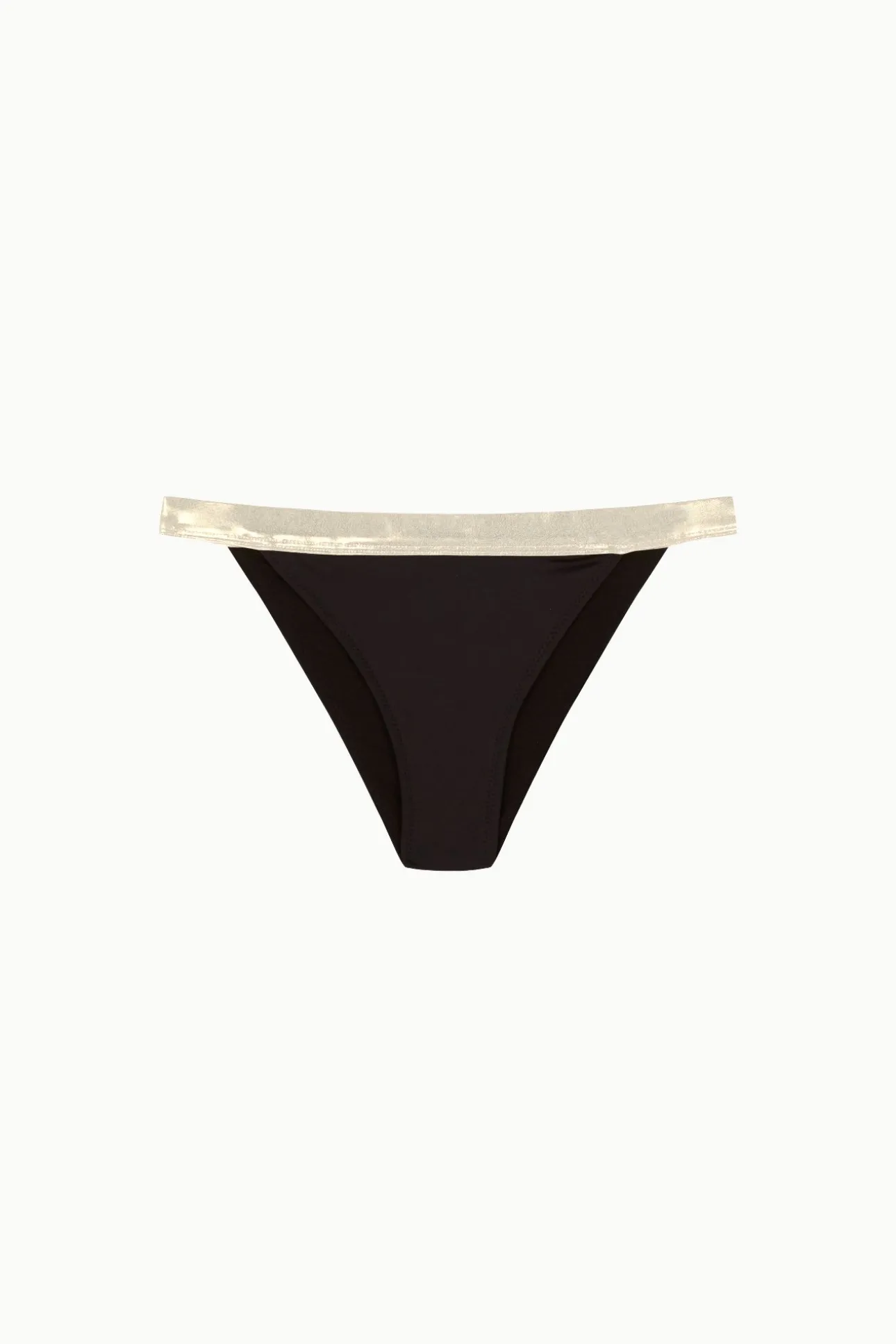 Confeccionada en tejido color negro y cinturilla en tejido dorado metalizado