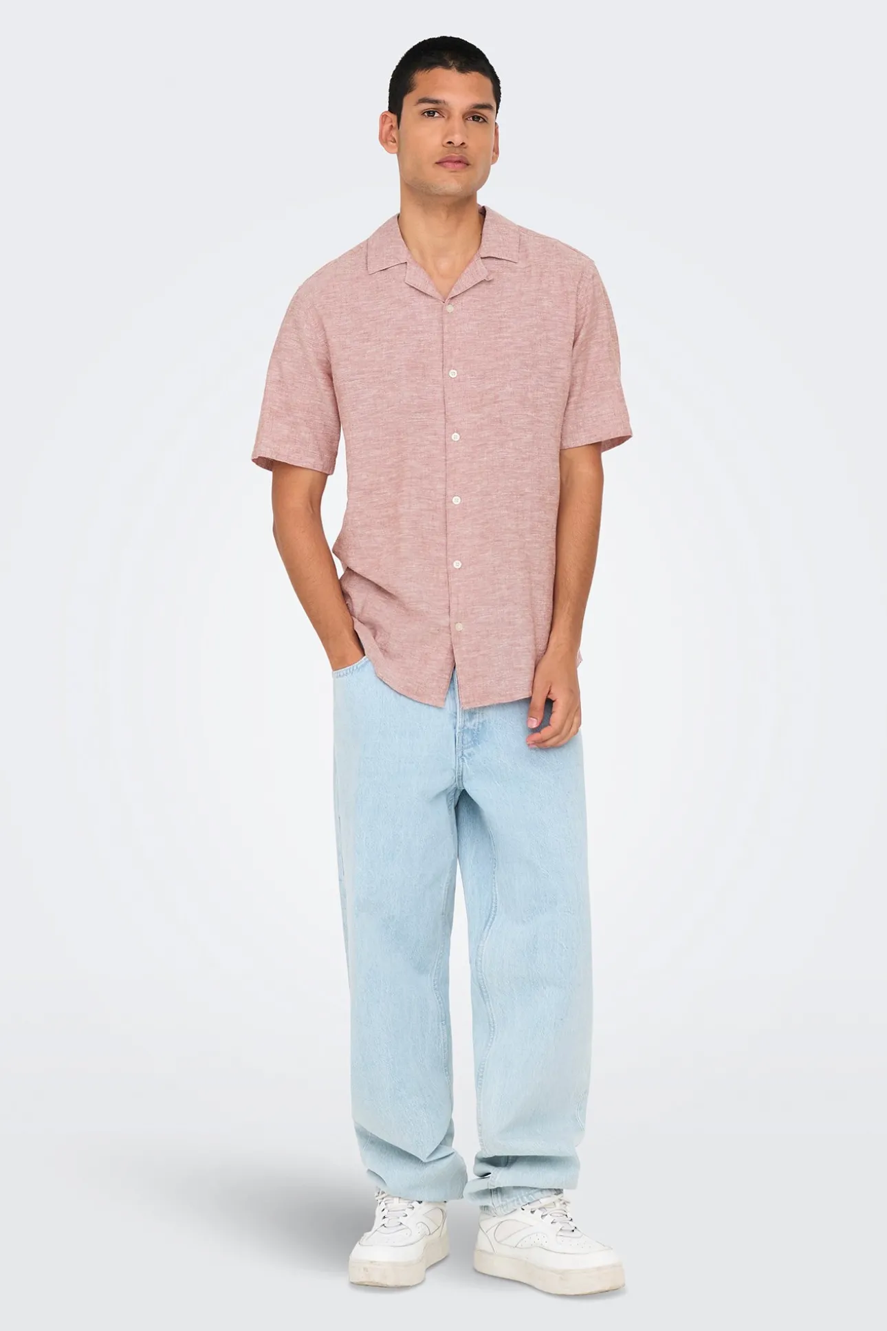 – Corte ajustado, cuello cubano y cierre de botones delantero.