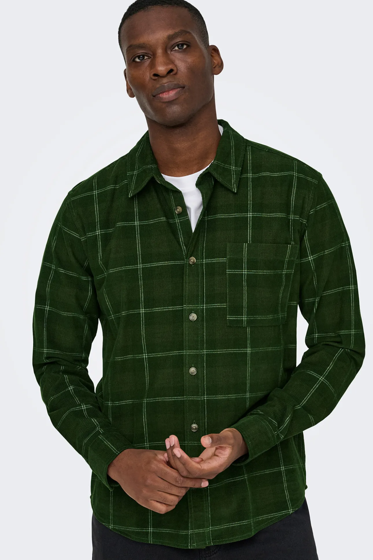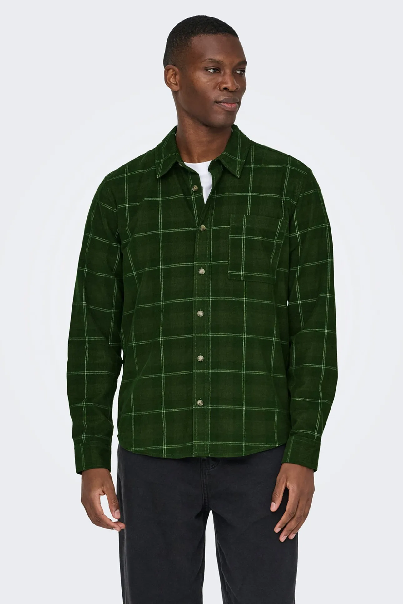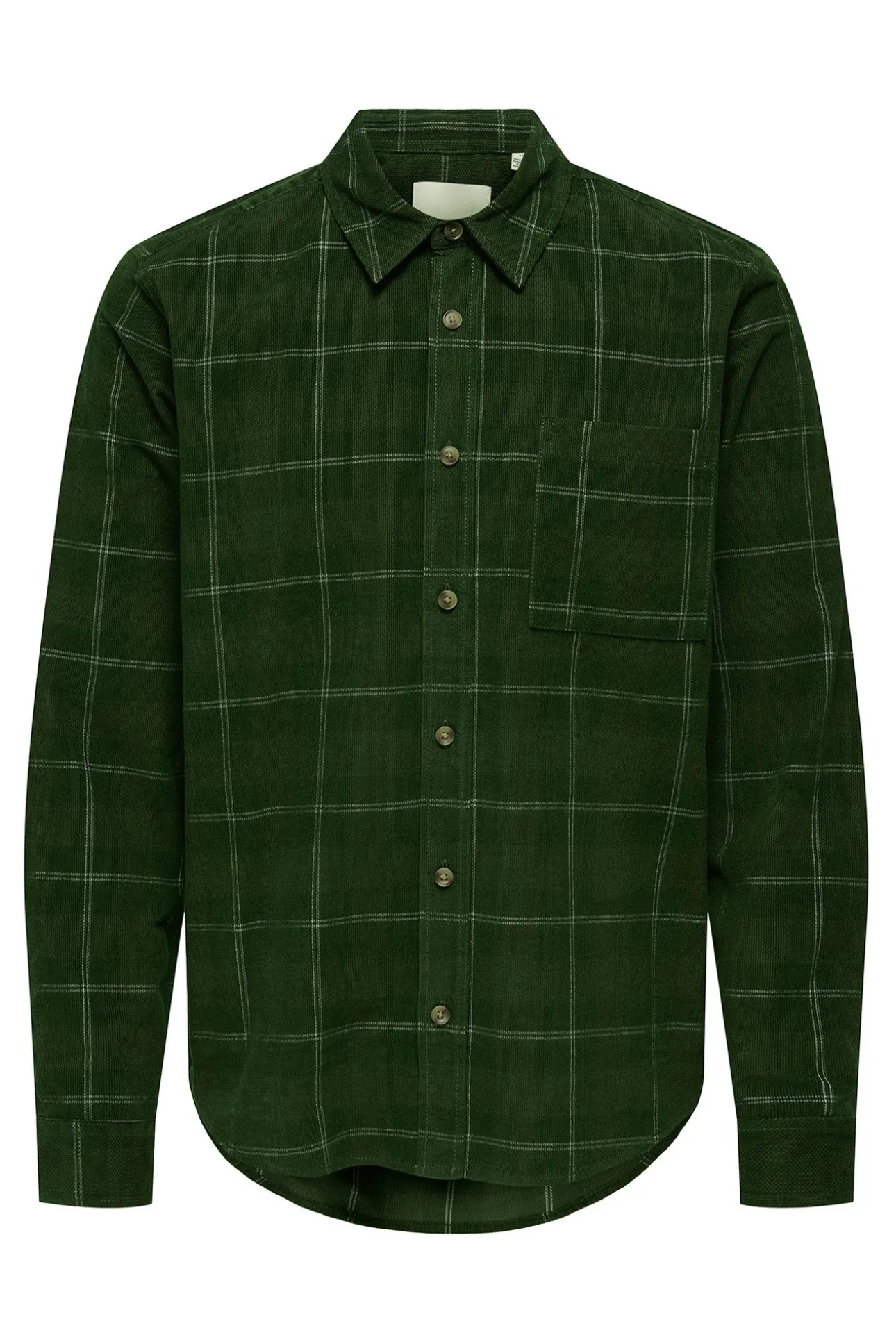 – Corte recto, cuello clásico, cierre de botones delantero, estampado de cuadros y bolsillo frontal superior.