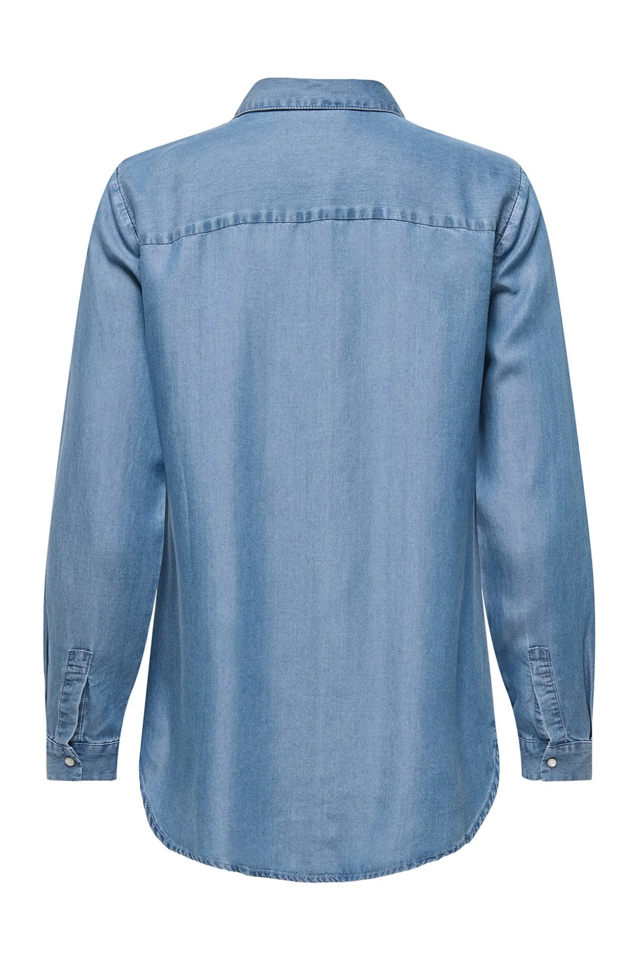 – Corte recto, cuello clásico, cierre de botones a presión frontal y bajo asimétrico.