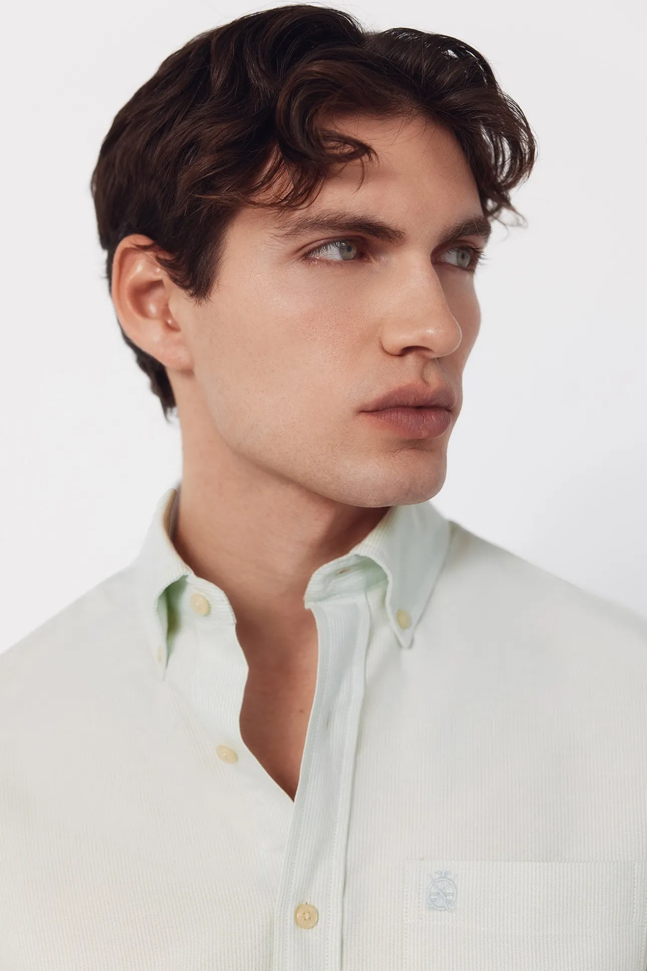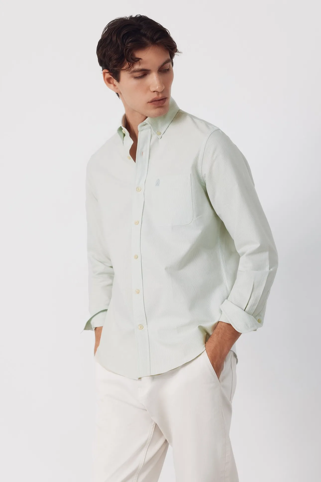 -Cuello con botones, bolsillo en pecho con logo bordado