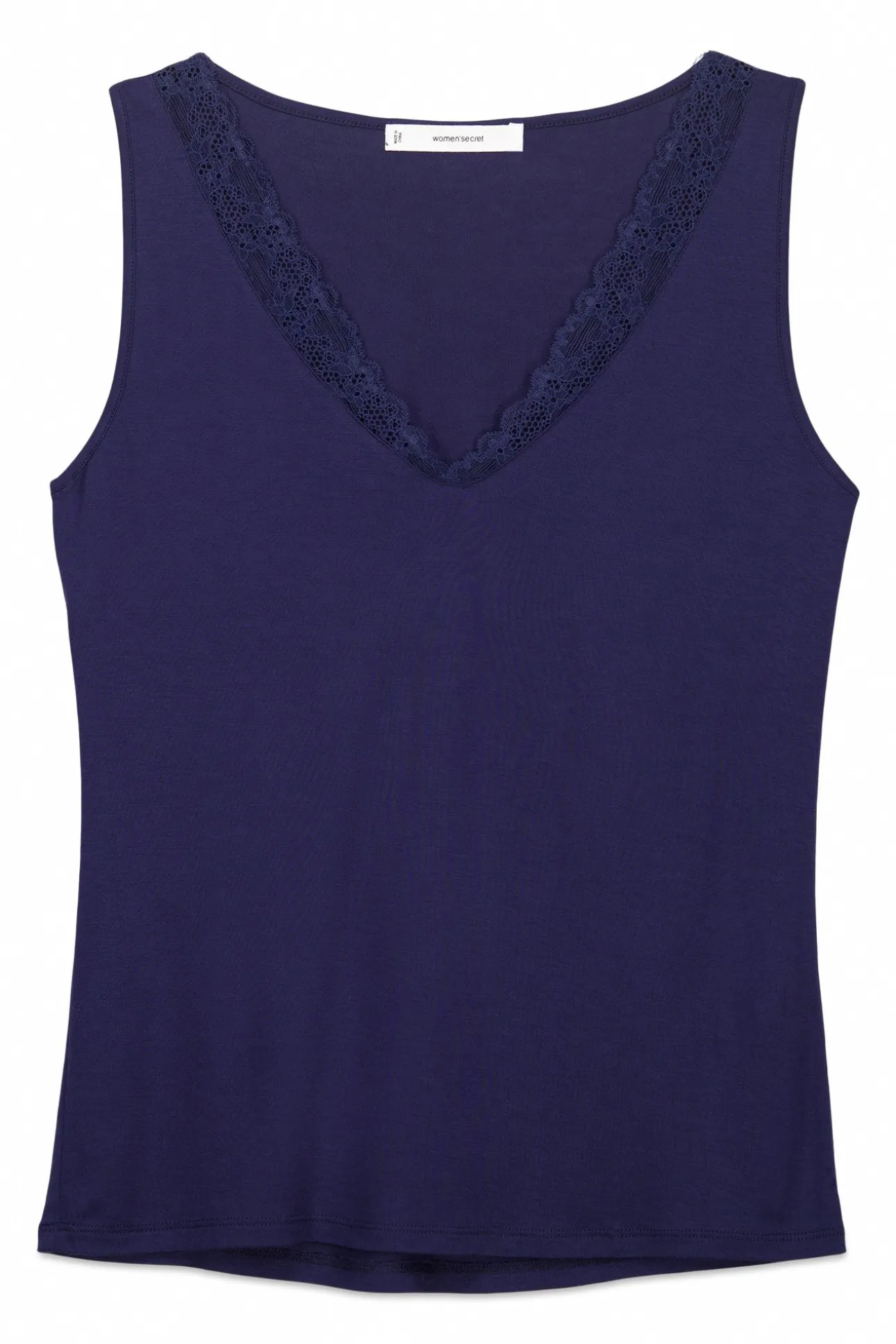 – Corte entallado y escote en pico con detalle de encaje a tono.