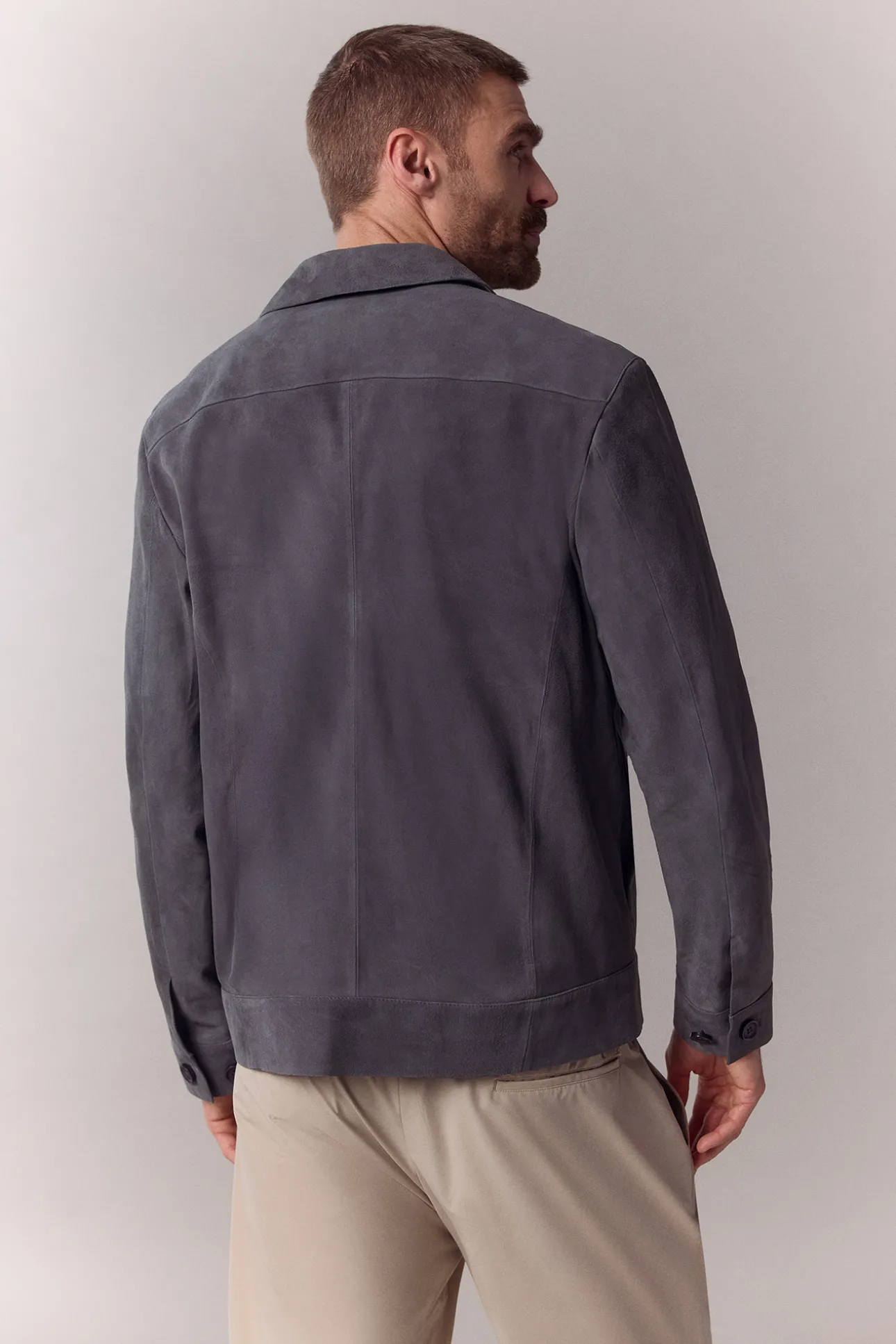 -Cazadora confeccionada en piel caprina con acabado en ante.