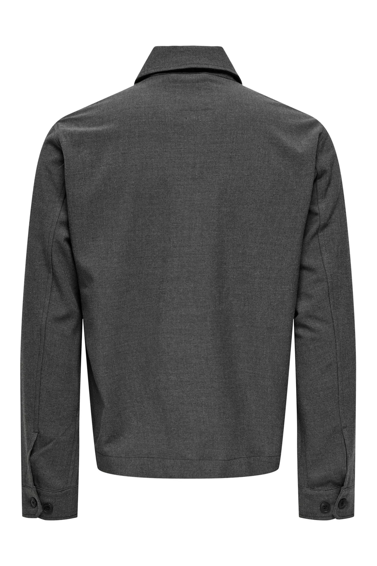 – Corte recto, cuello cásico y bolsillos frontales superiores.