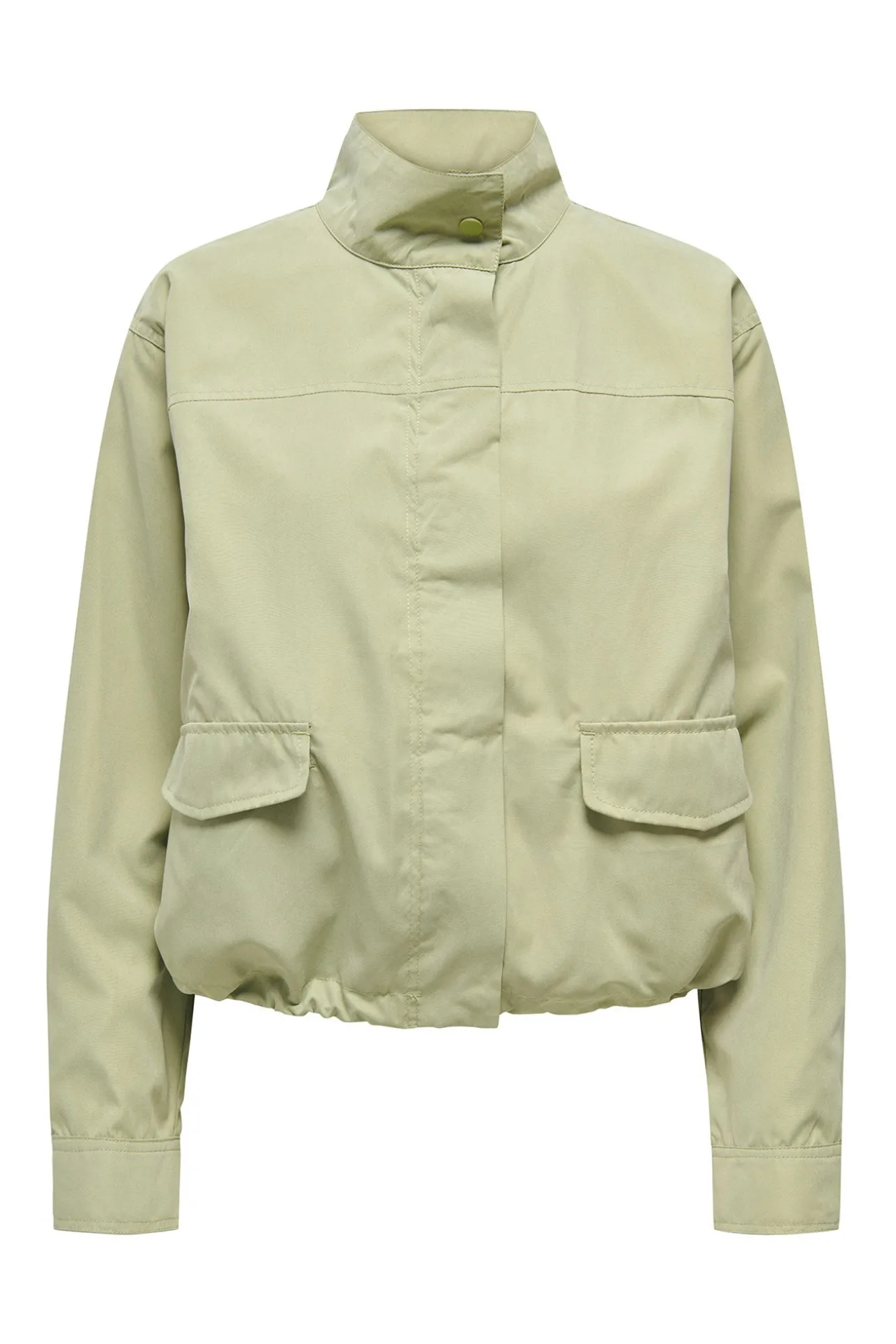 – Corte recto, cuello subido, manga larga, cierre de cremallera y botones automáticos ocultos con solapa y bolsillos inferiores frontales con solapas.