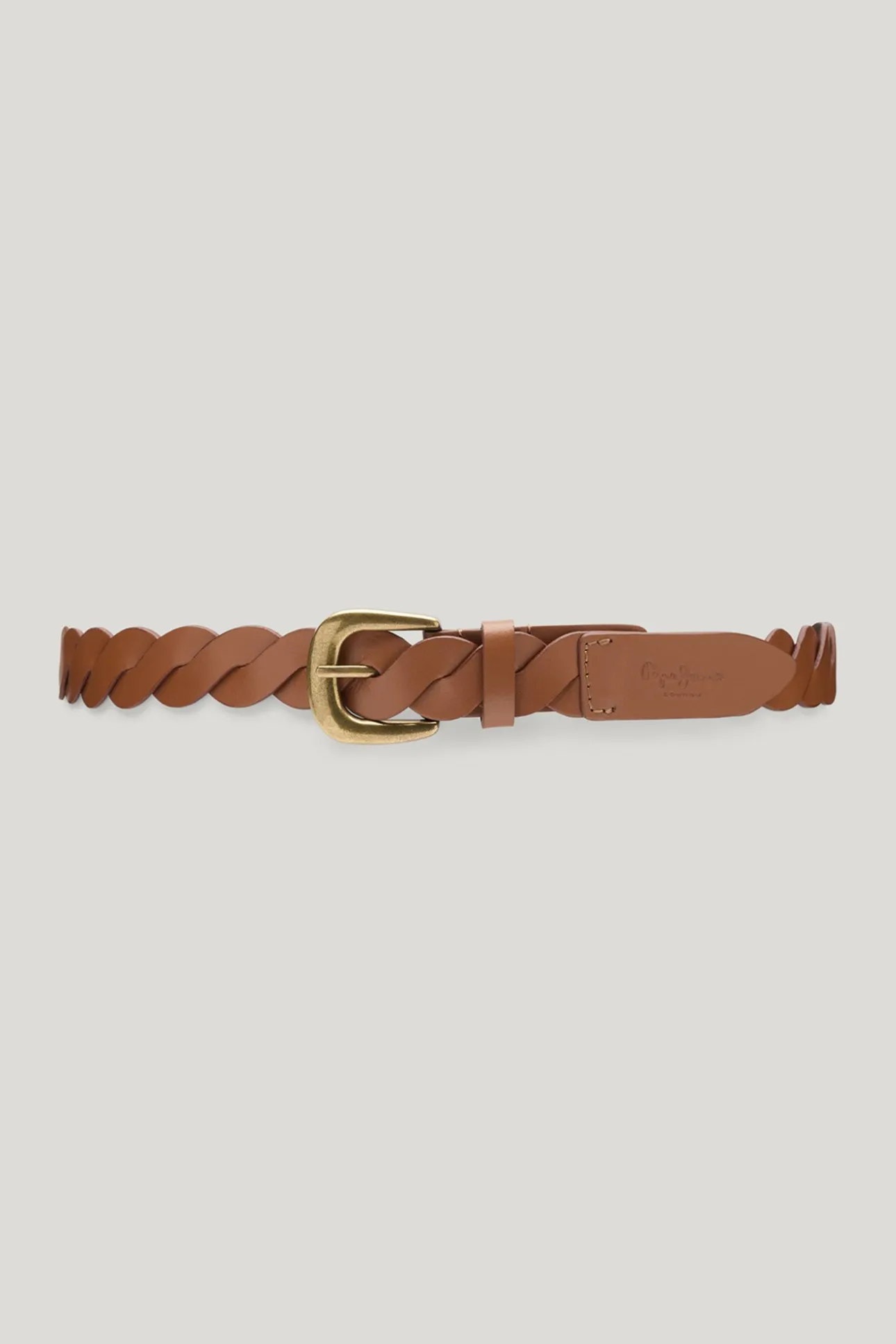 Cinturón Isabelle fabricado en cuero trenzado, hebilla metálica dorada envejecida y logotipo clásico.