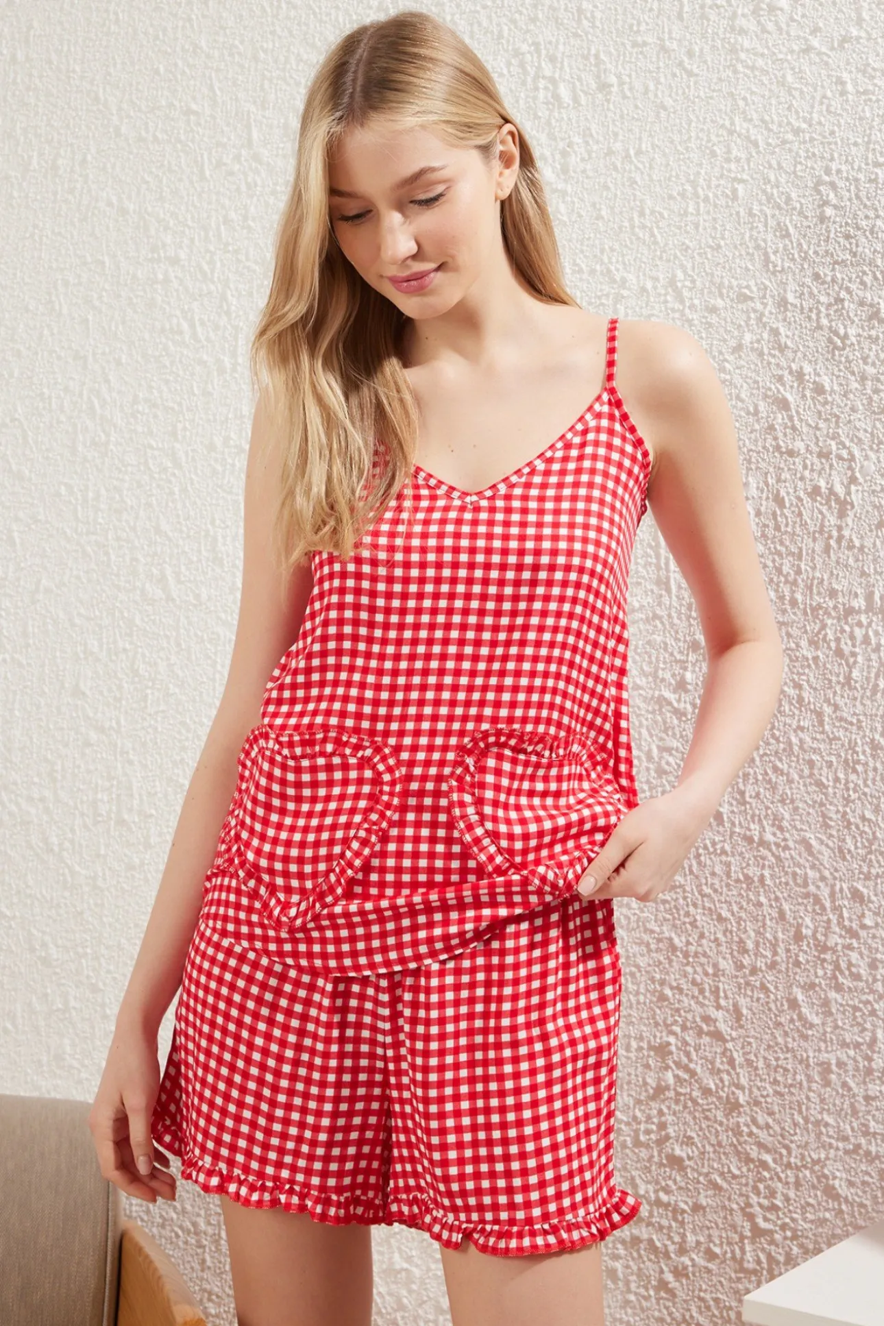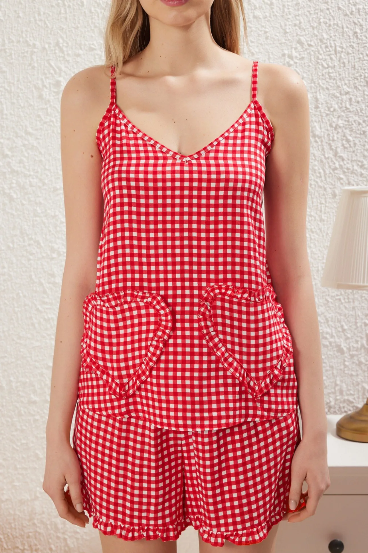 Conjunto de pijama corto vichy corazones