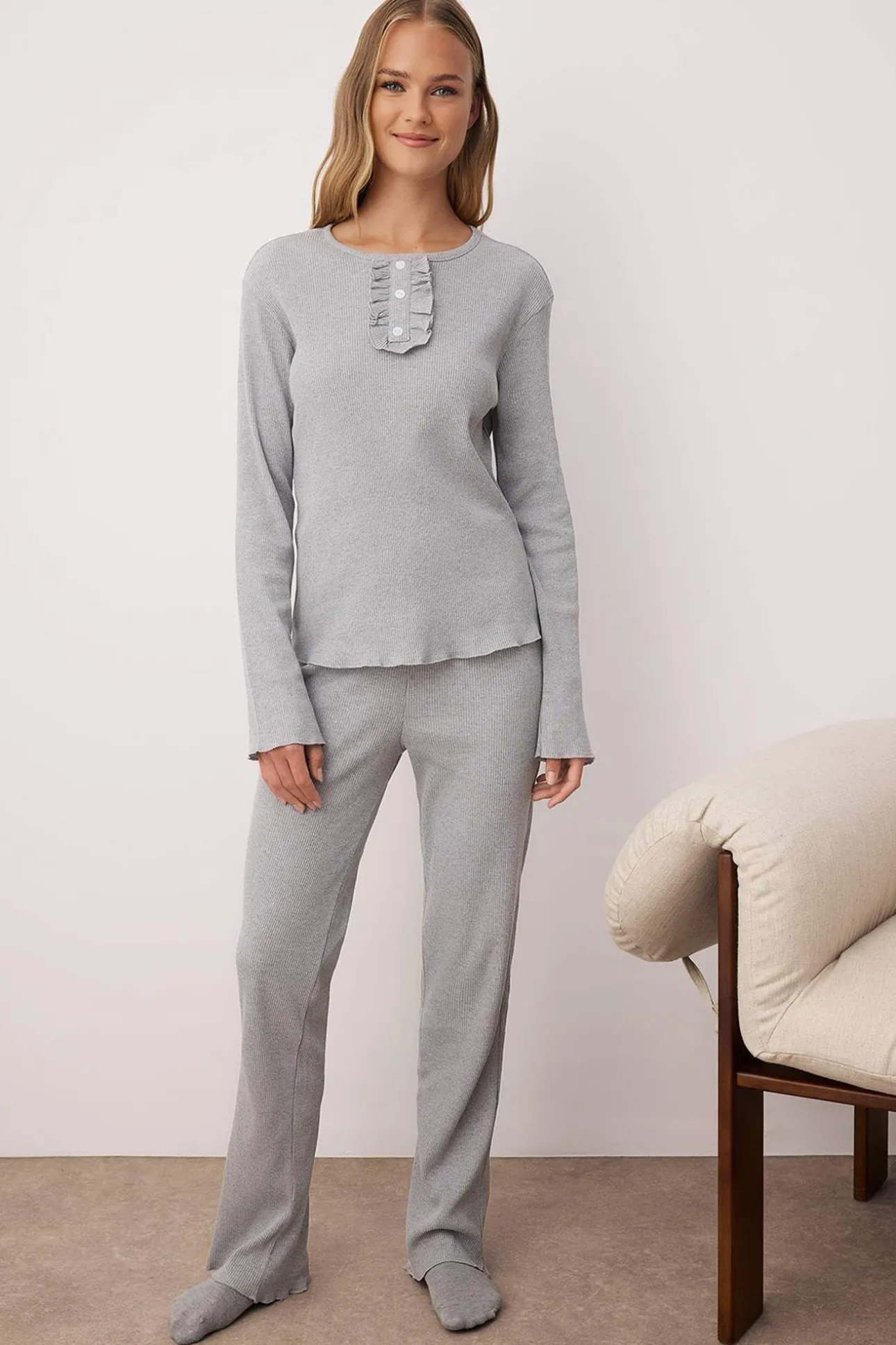 Conjunto pijama jaspeado tapeta gris