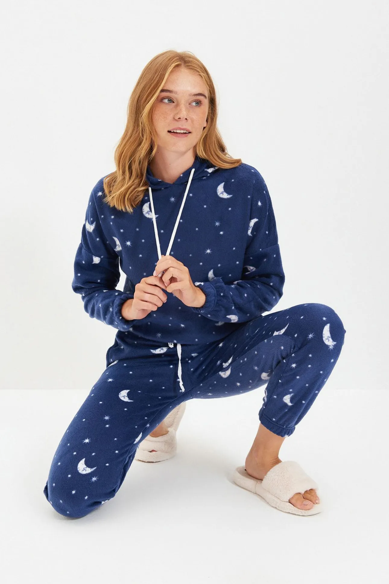 Conjunto pijama polar capucha azul galaxia