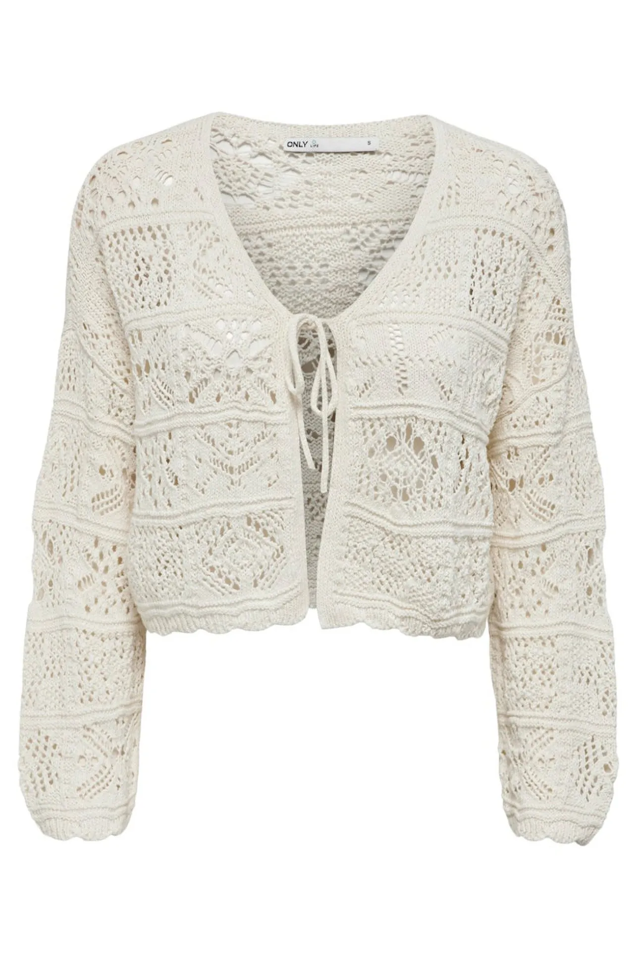 – Cuello de pico y cierre frontal con lazada.