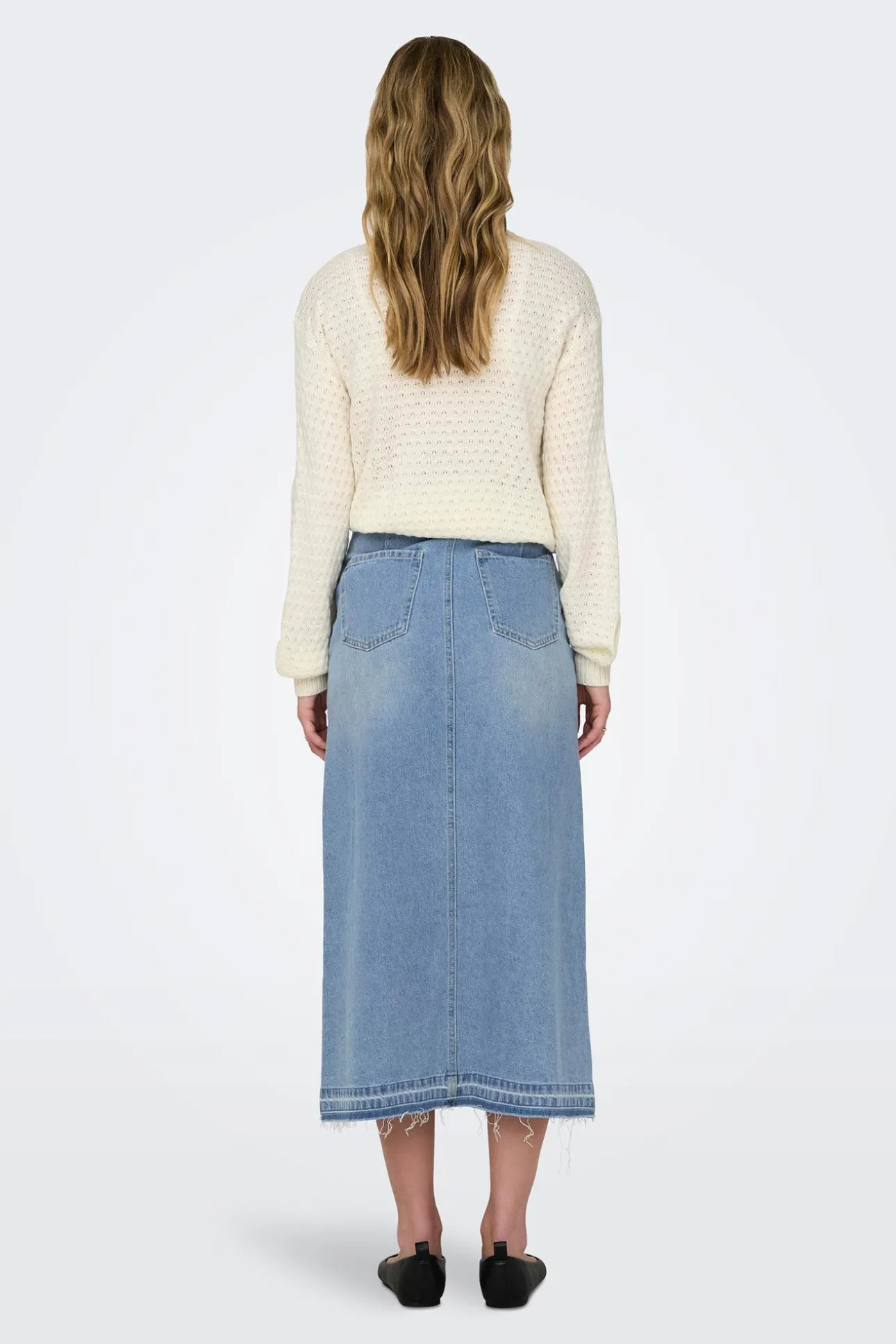 Falda vaquera larga con apertura frontal