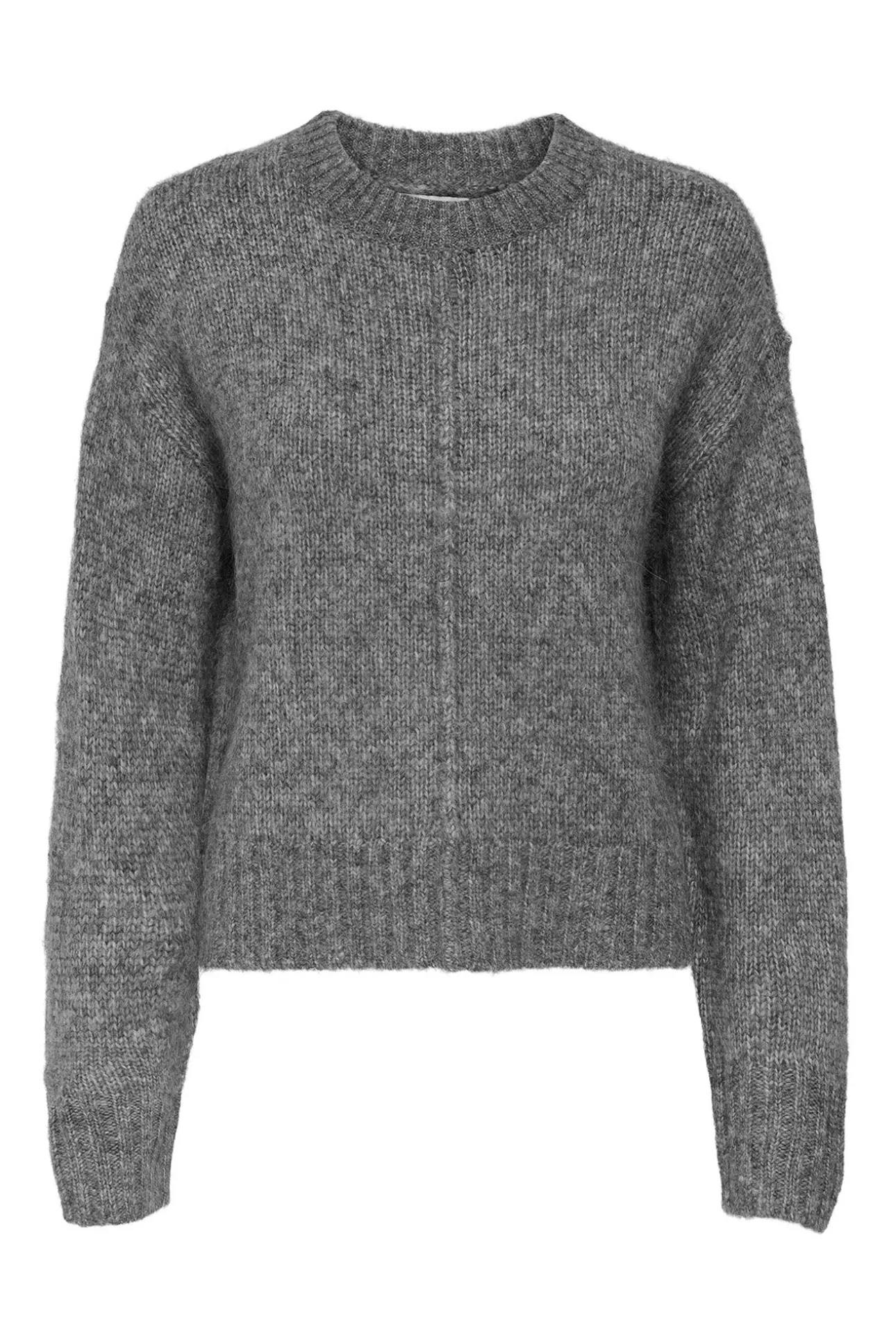 – Corte recto y cuadrado, manga larga, bordes acanalados y costura central vertical decorativa.