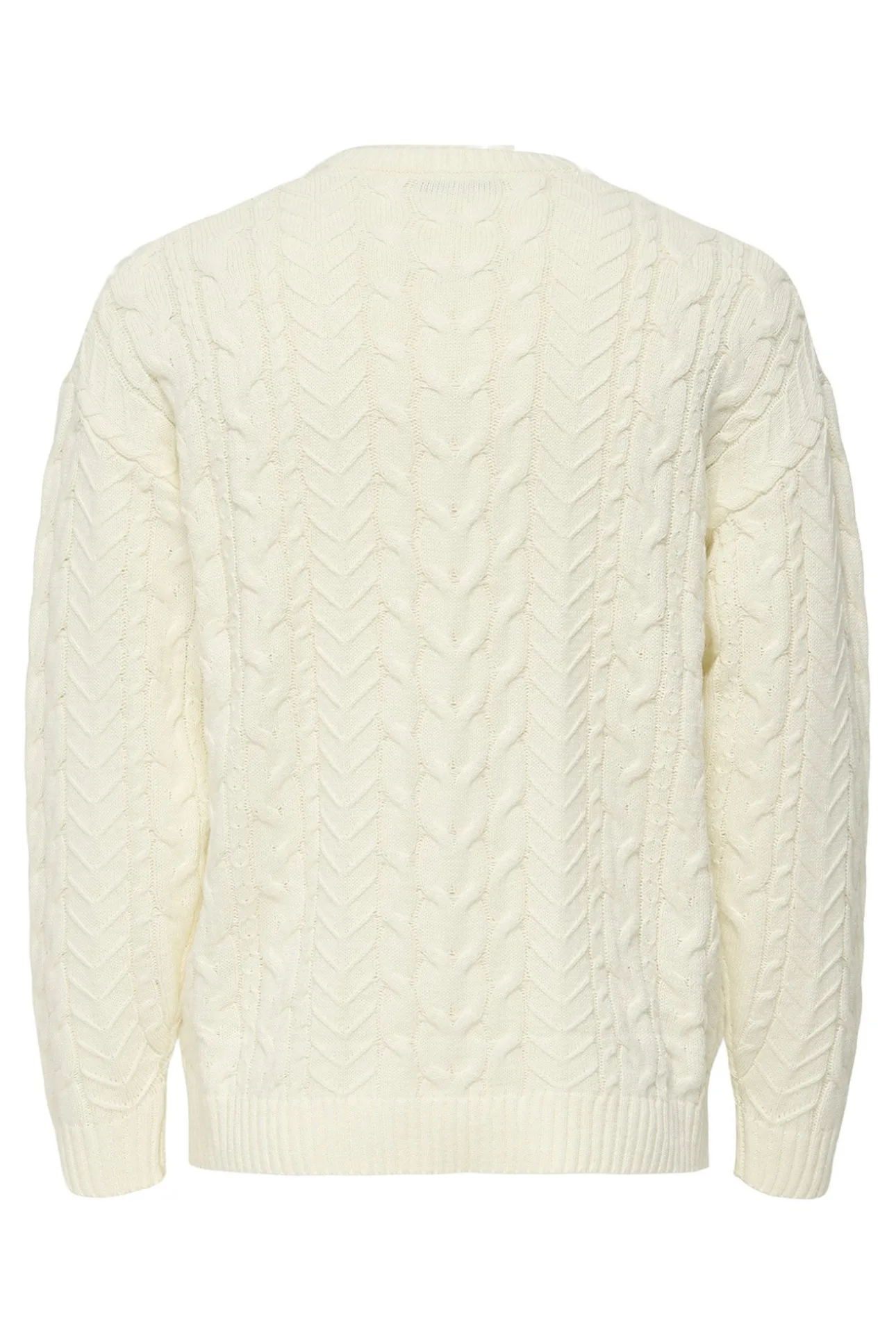 – Corte holgado, manga larga, patrón trenzado y dibujo frontal bordado.