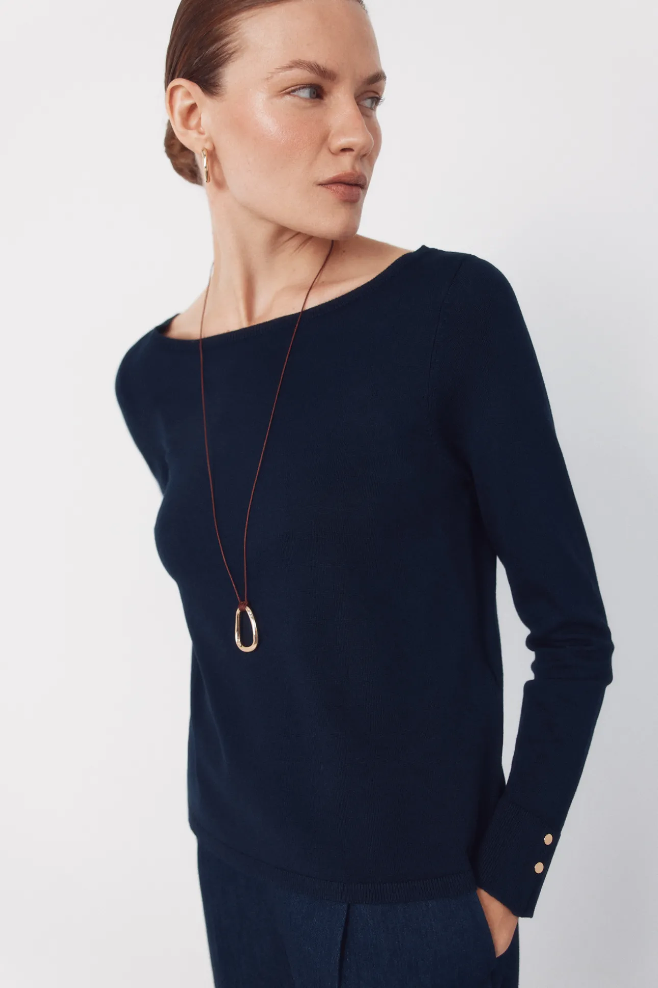 – Manga larga con pequeños botones en puño.