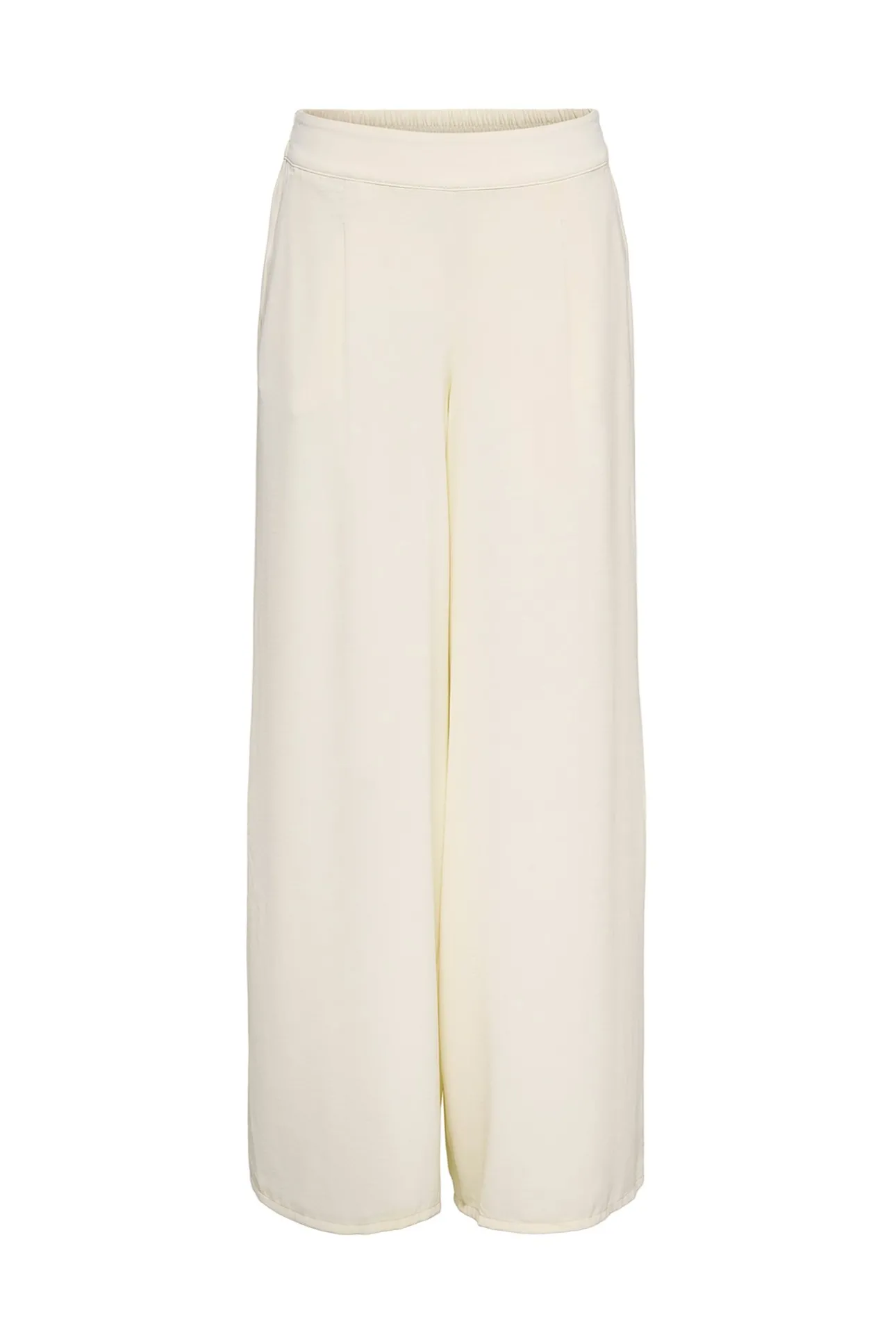 – Tiro alto, pinzas frontales, cintura elástica y bolsillos laterales.