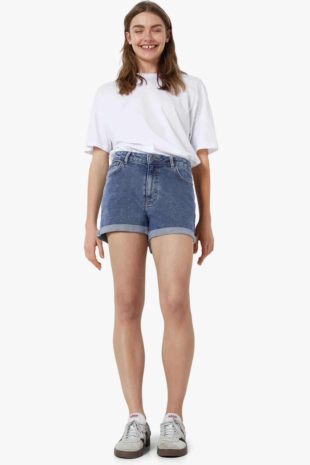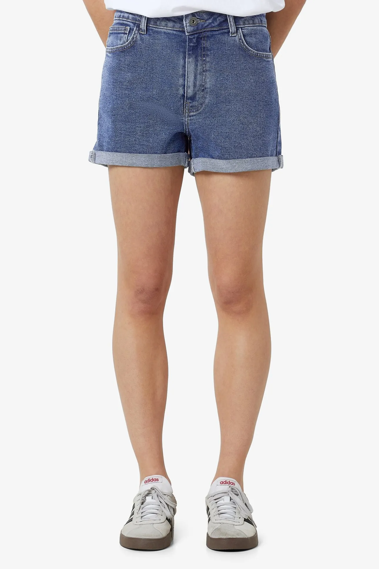 Short vaquero básico con dobladillo de cinco bolsillos.