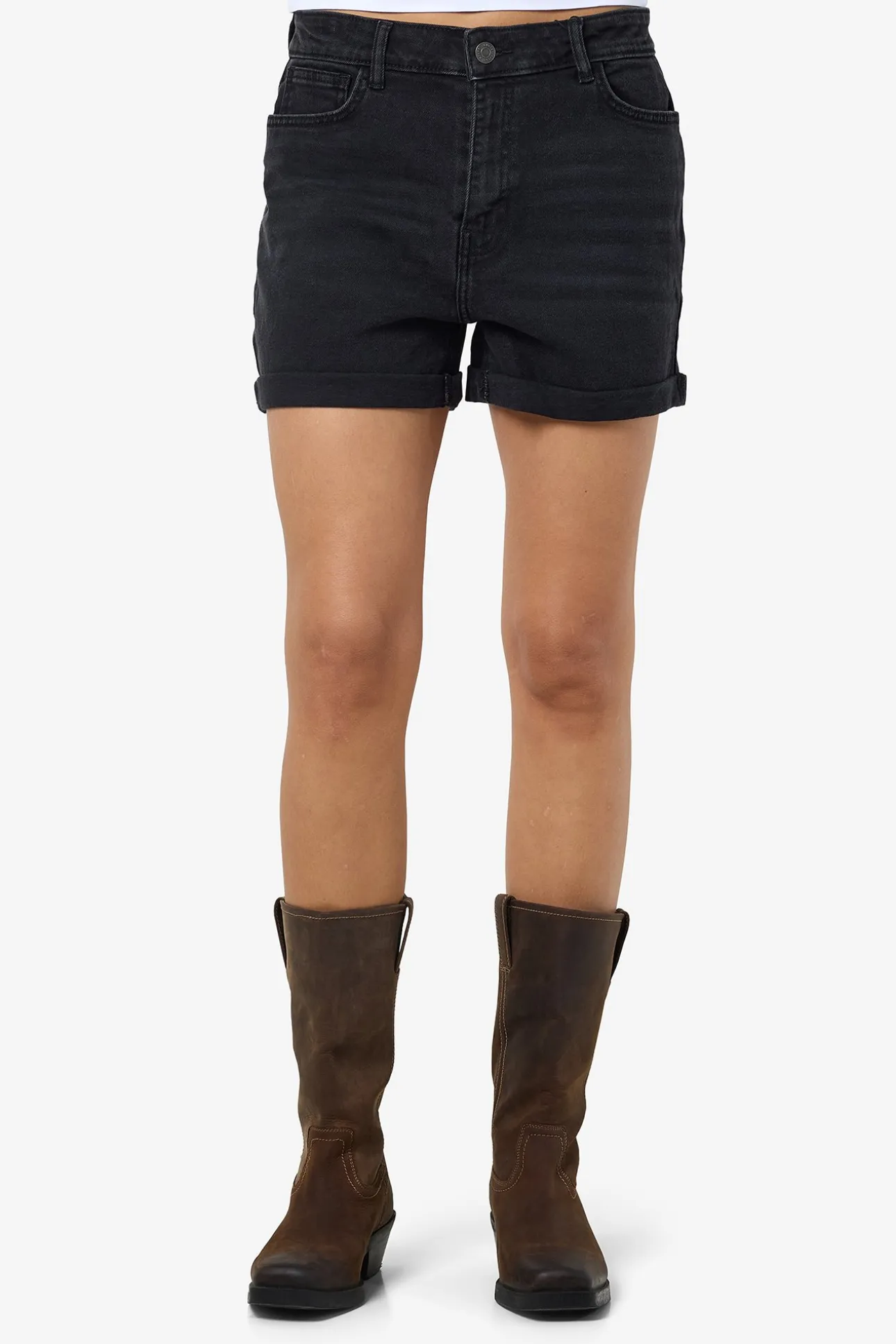 Short vaquero básico con dobladillo de cinco bolsillos.