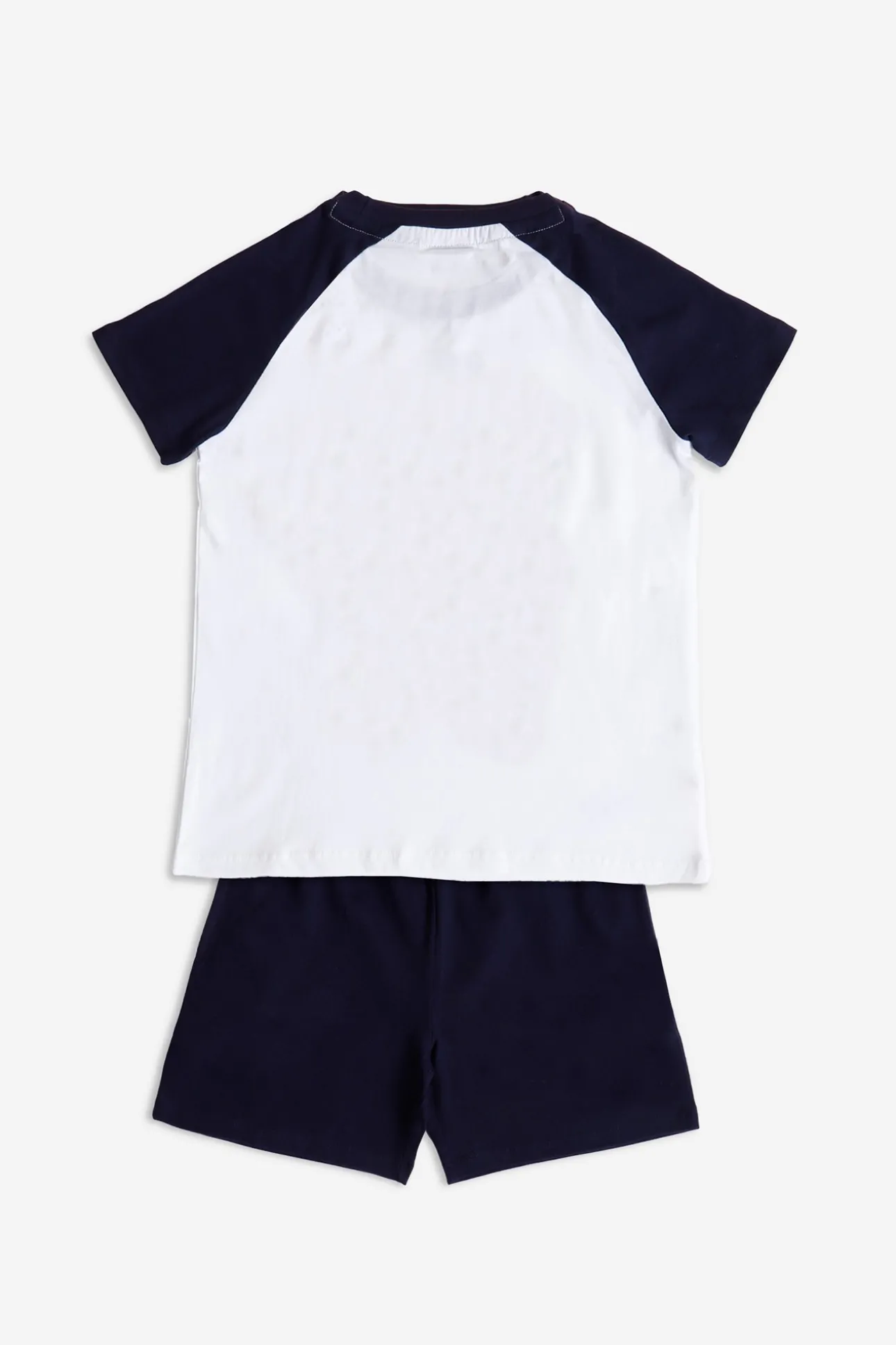 * Pijama de punto de algodón, de manga corta, cuello redondo y pantalón corto.