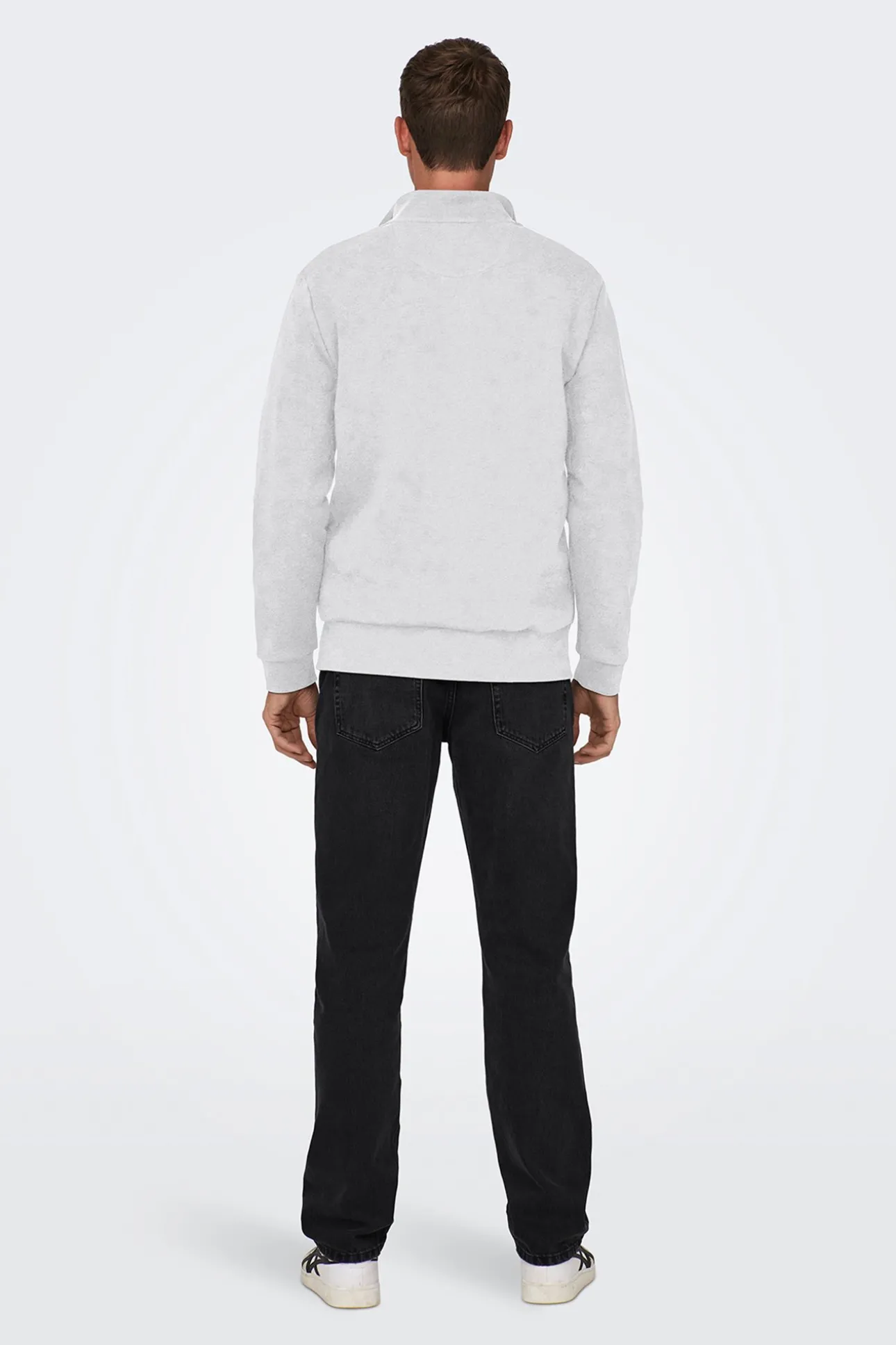 – Corte regular, cuello alto con cierre de cremallera y manga larga.