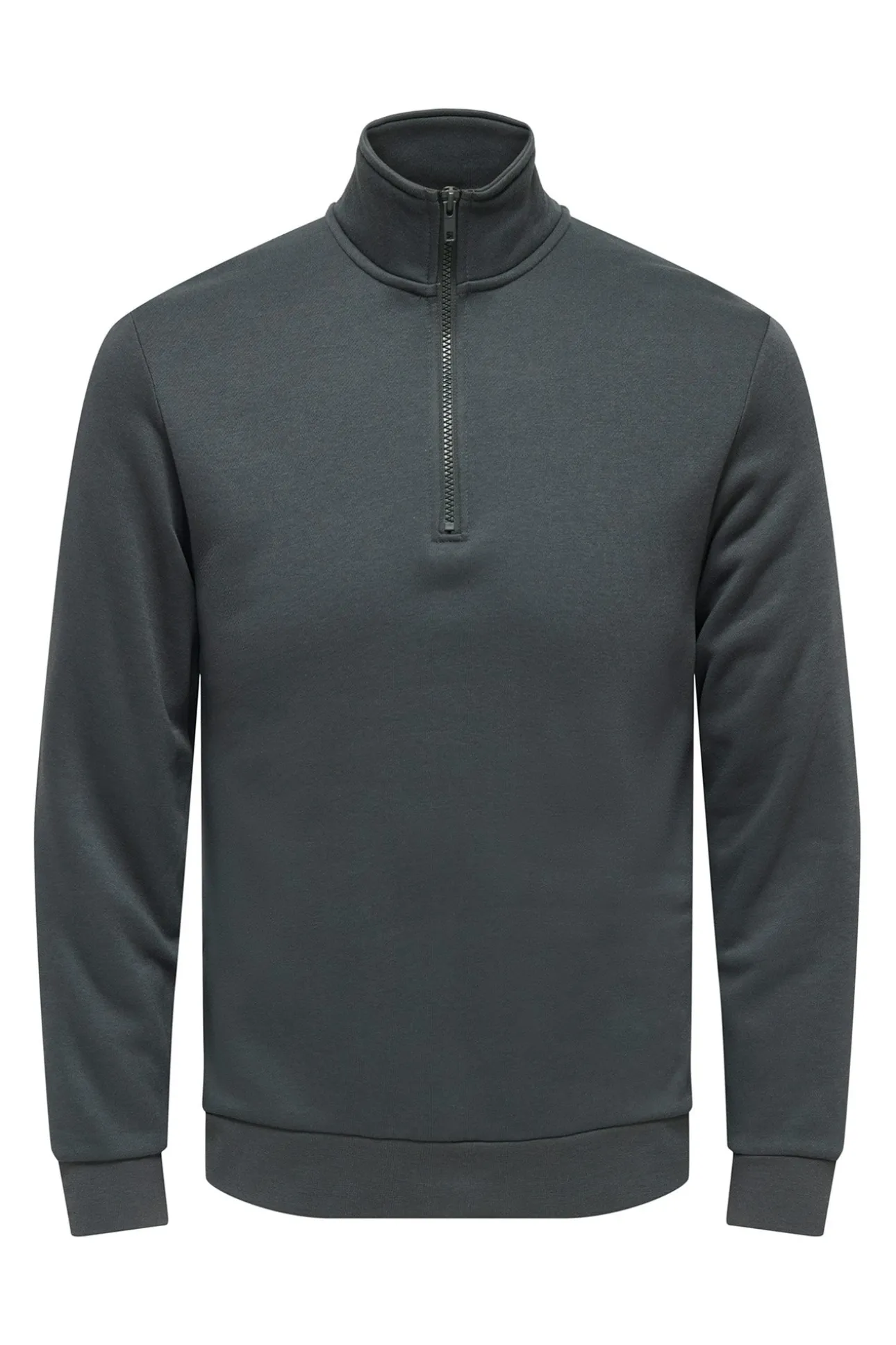 – Corte regular, cuello alto con cierre de cremallera y manga larga.