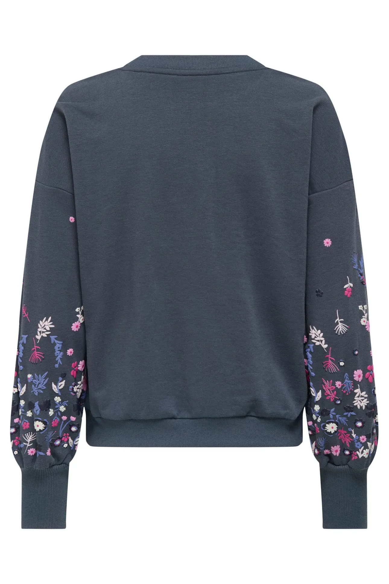 – Manga larga con detalle de flores.