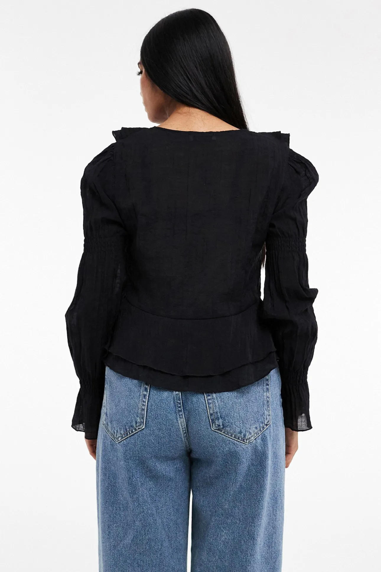 Top manga larga plisado