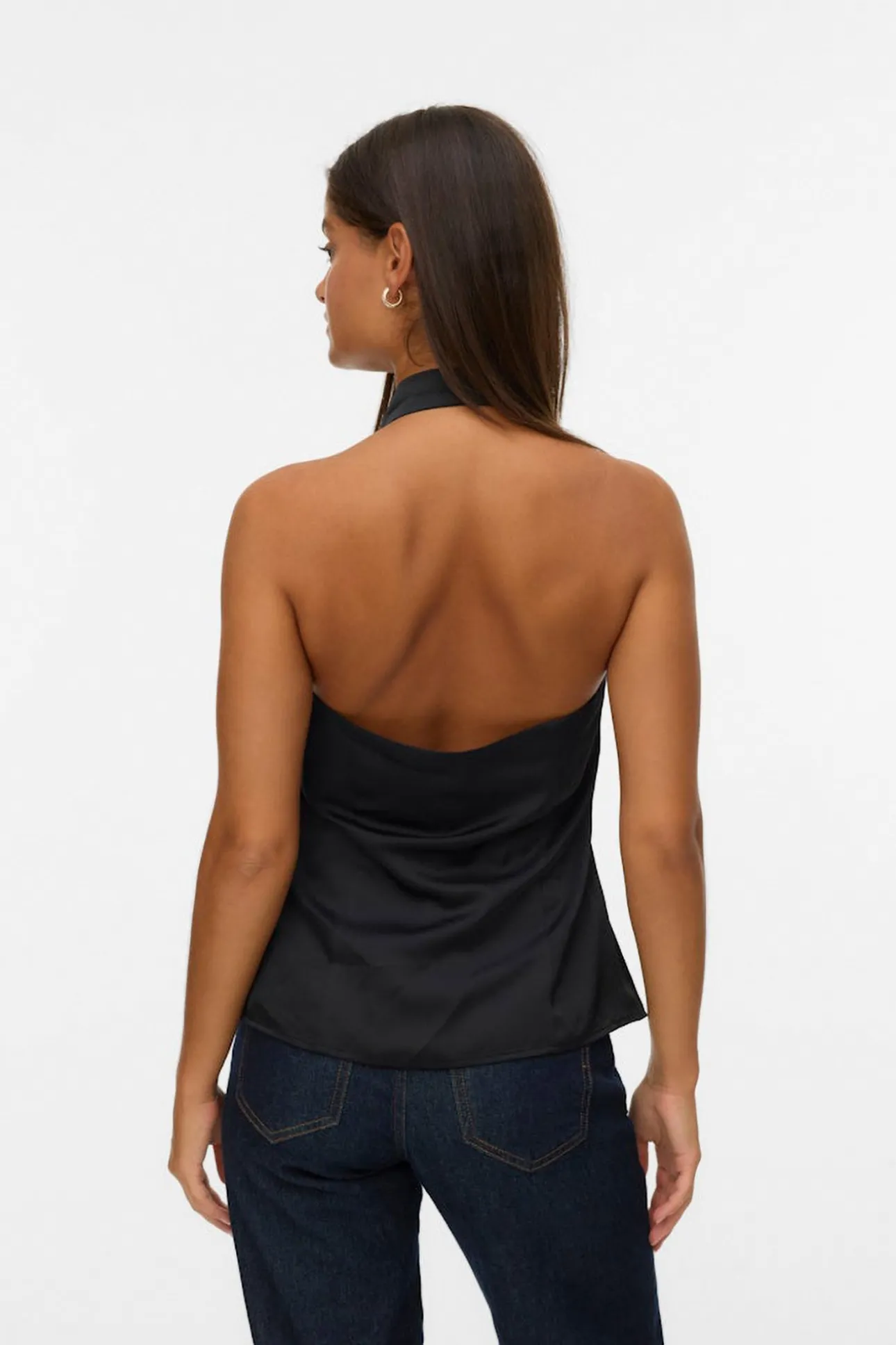 Top satinado atado al cuello