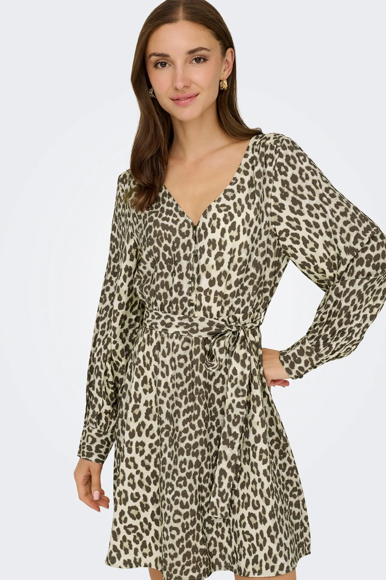 – Corte amplio y suelto, manga larga, cuello pico, cierre de botones delantero, puños ajustados y lazo ajustable en la cintura.