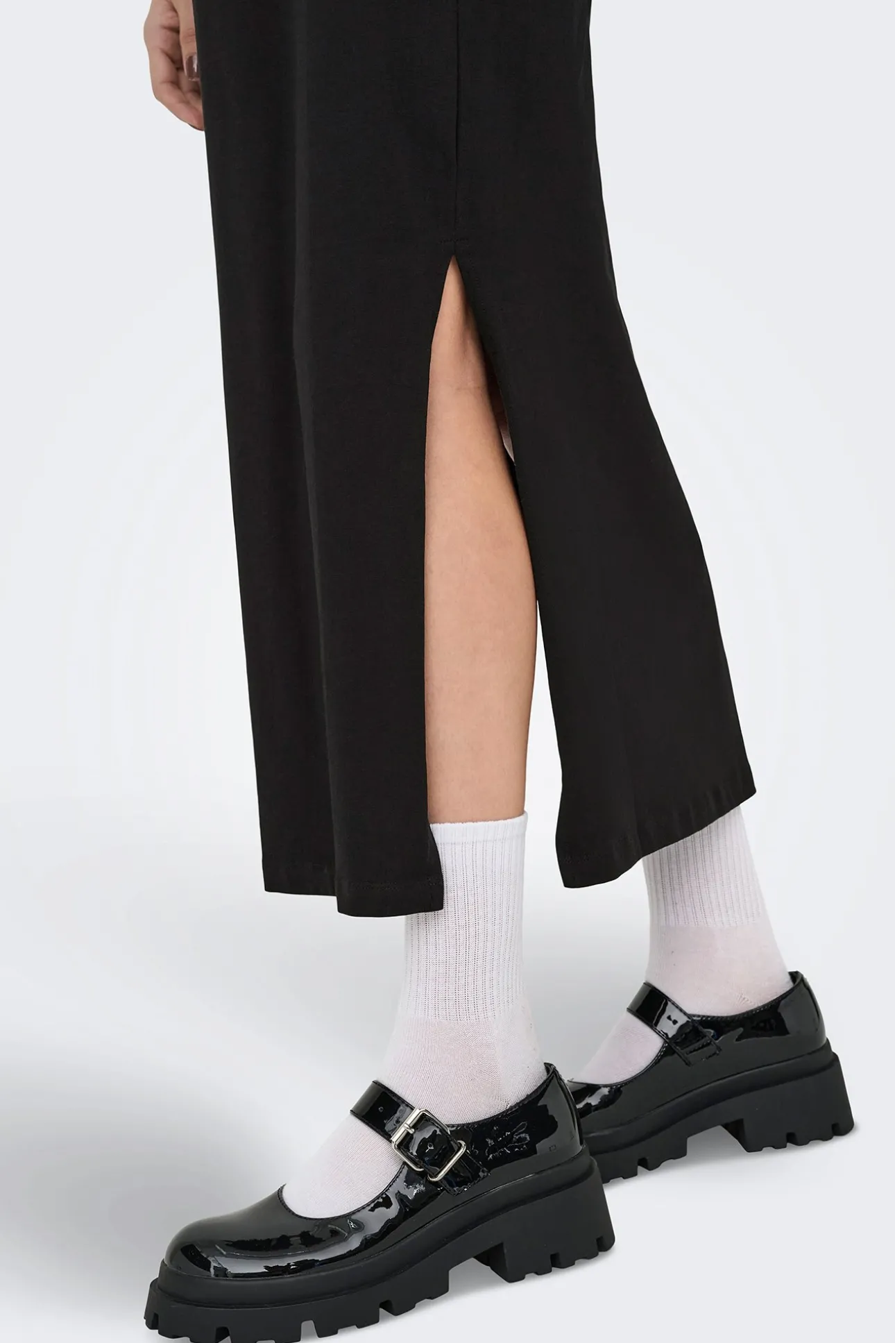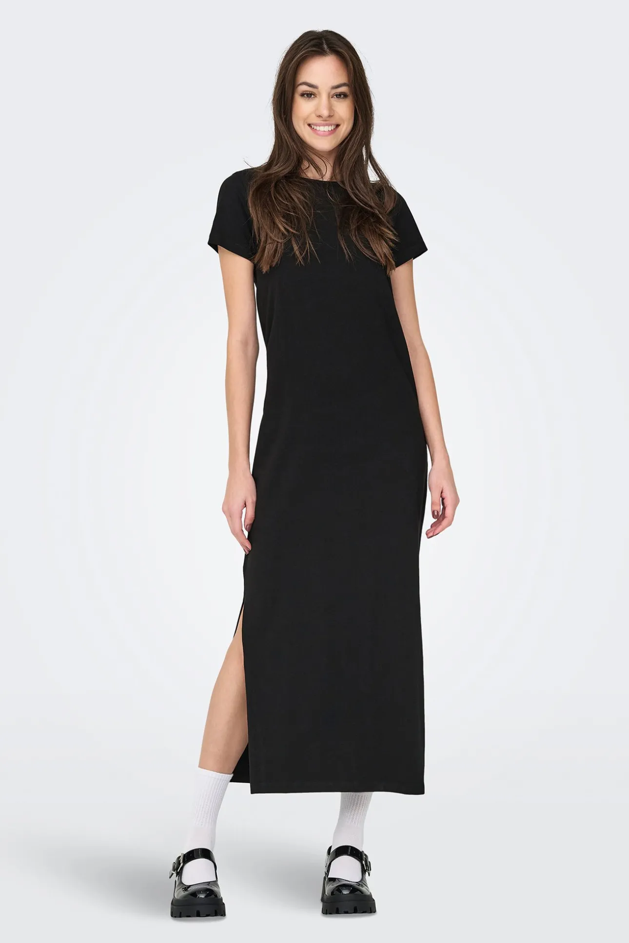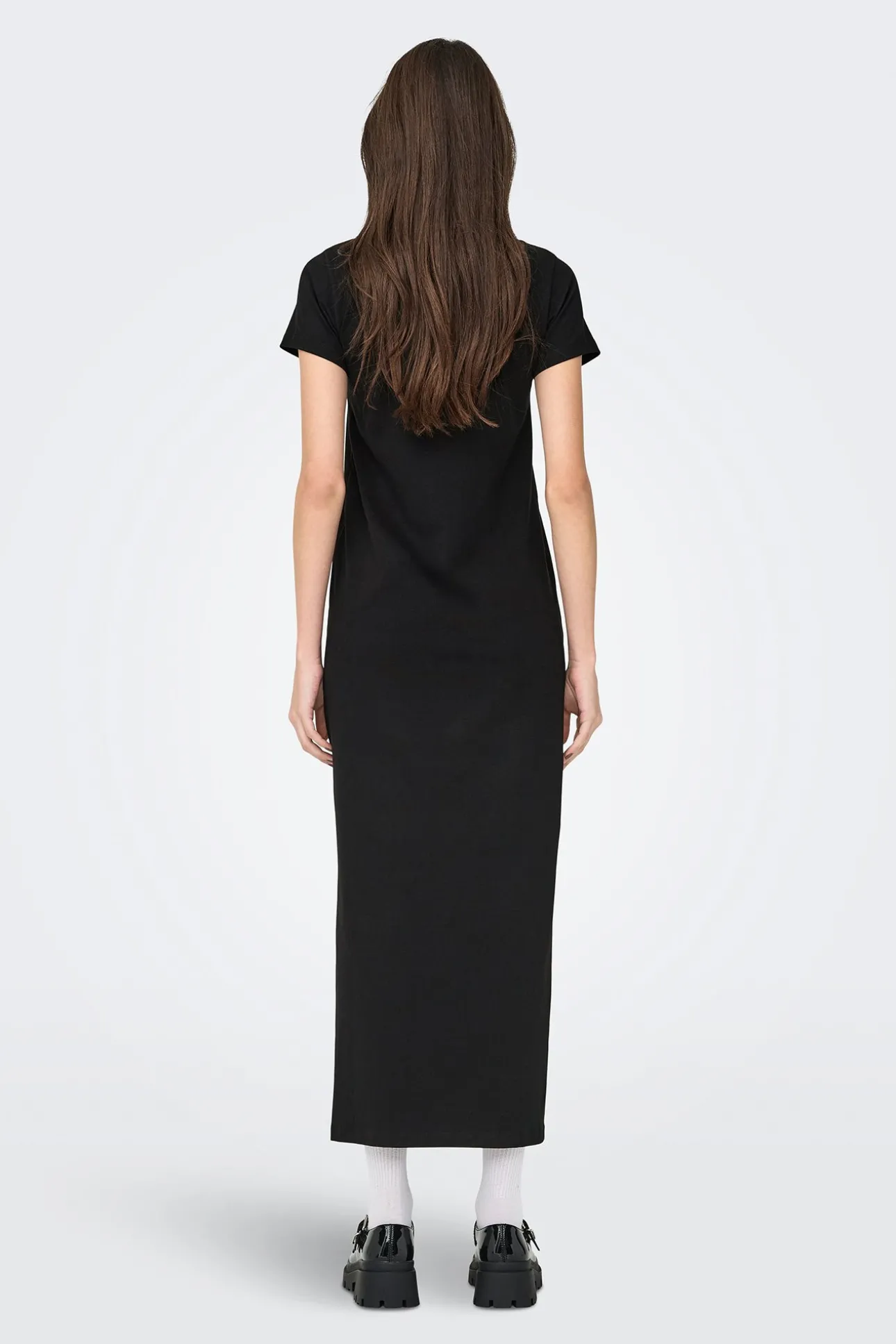 – Manga corta, cuello redondo y pequeña abertura lateral.