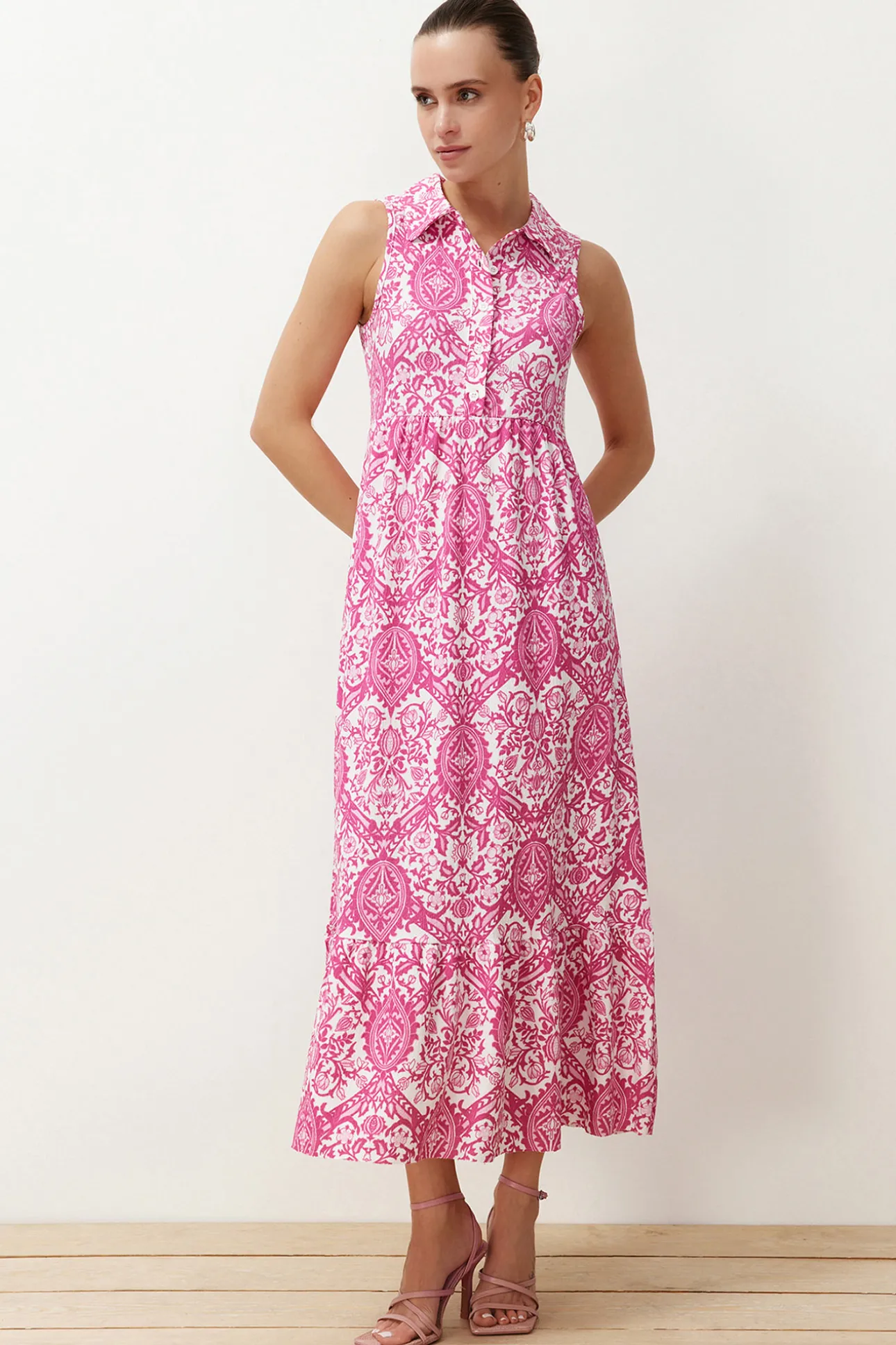 Vestido largo cuello camisero
