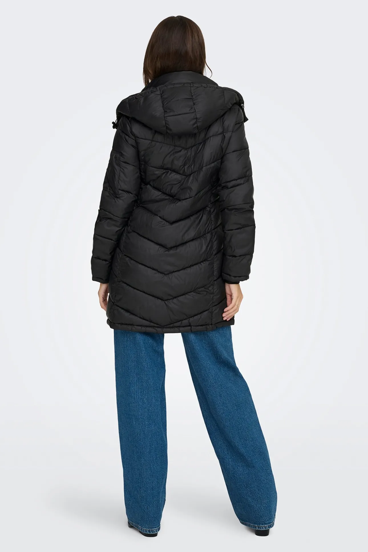 – Cuello alto con capucha incorporada.