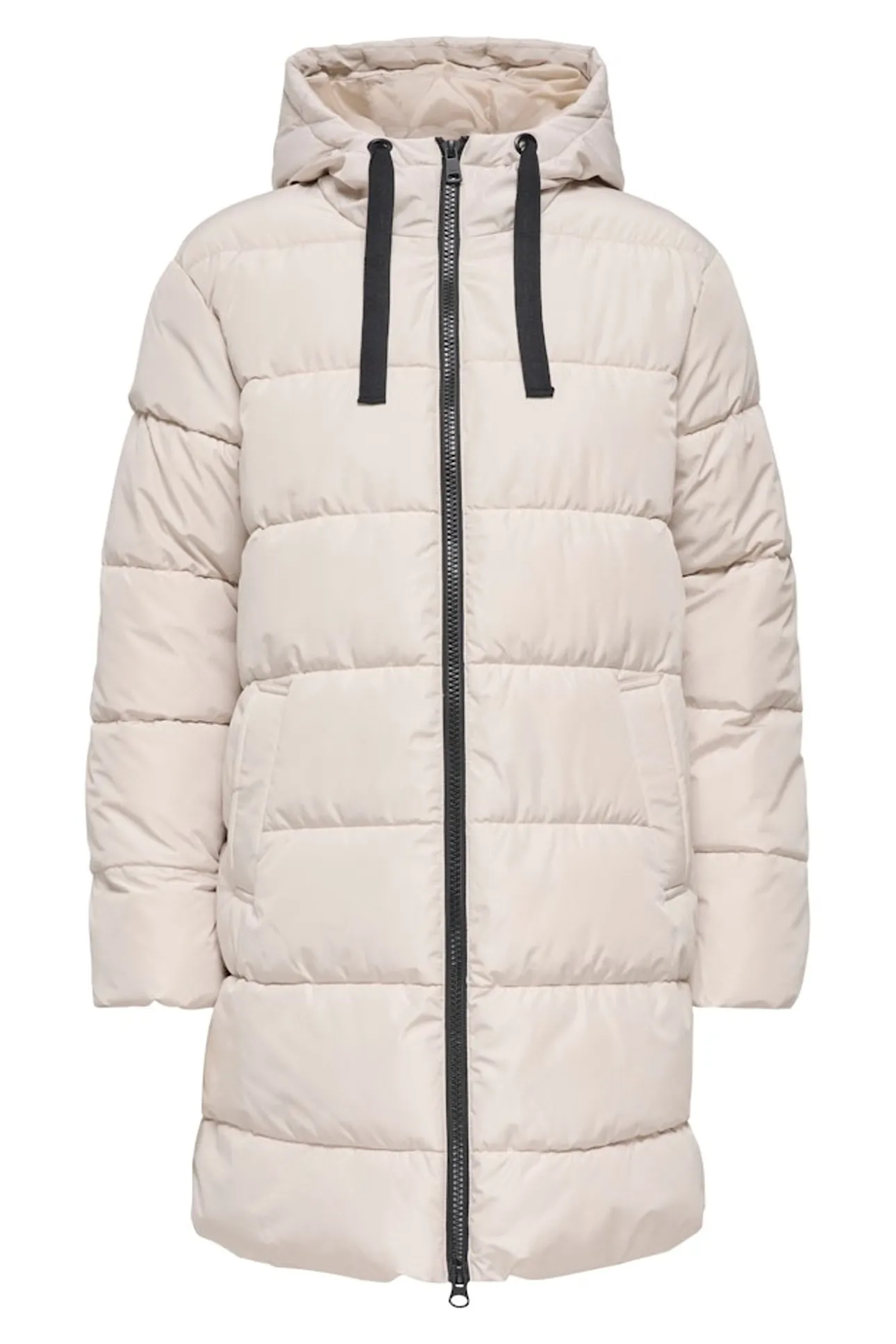 – Cuello alto con capucha regulable incorporada.