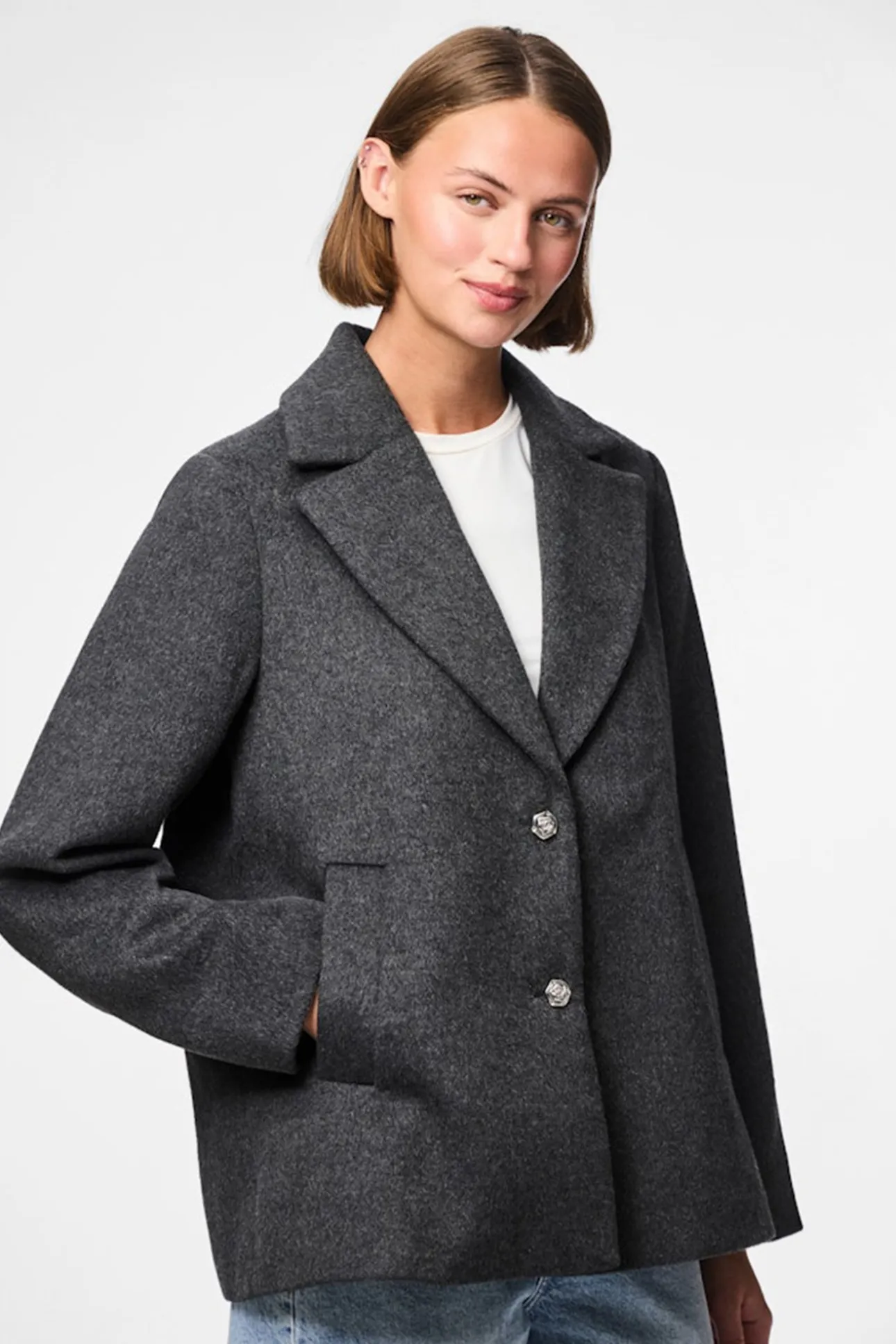 Abrigo paño corto botón flor