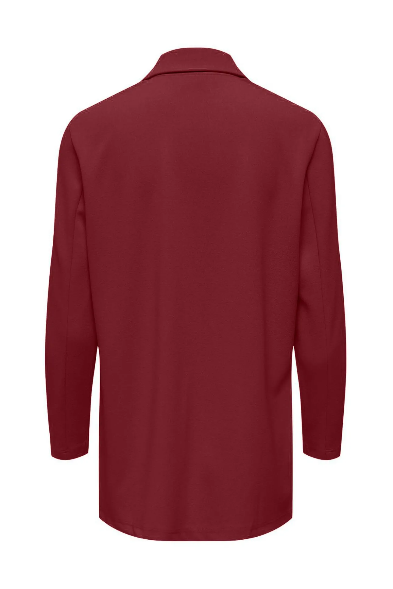 – Corte recto y largo, manga larga y solapas tipo sastre.