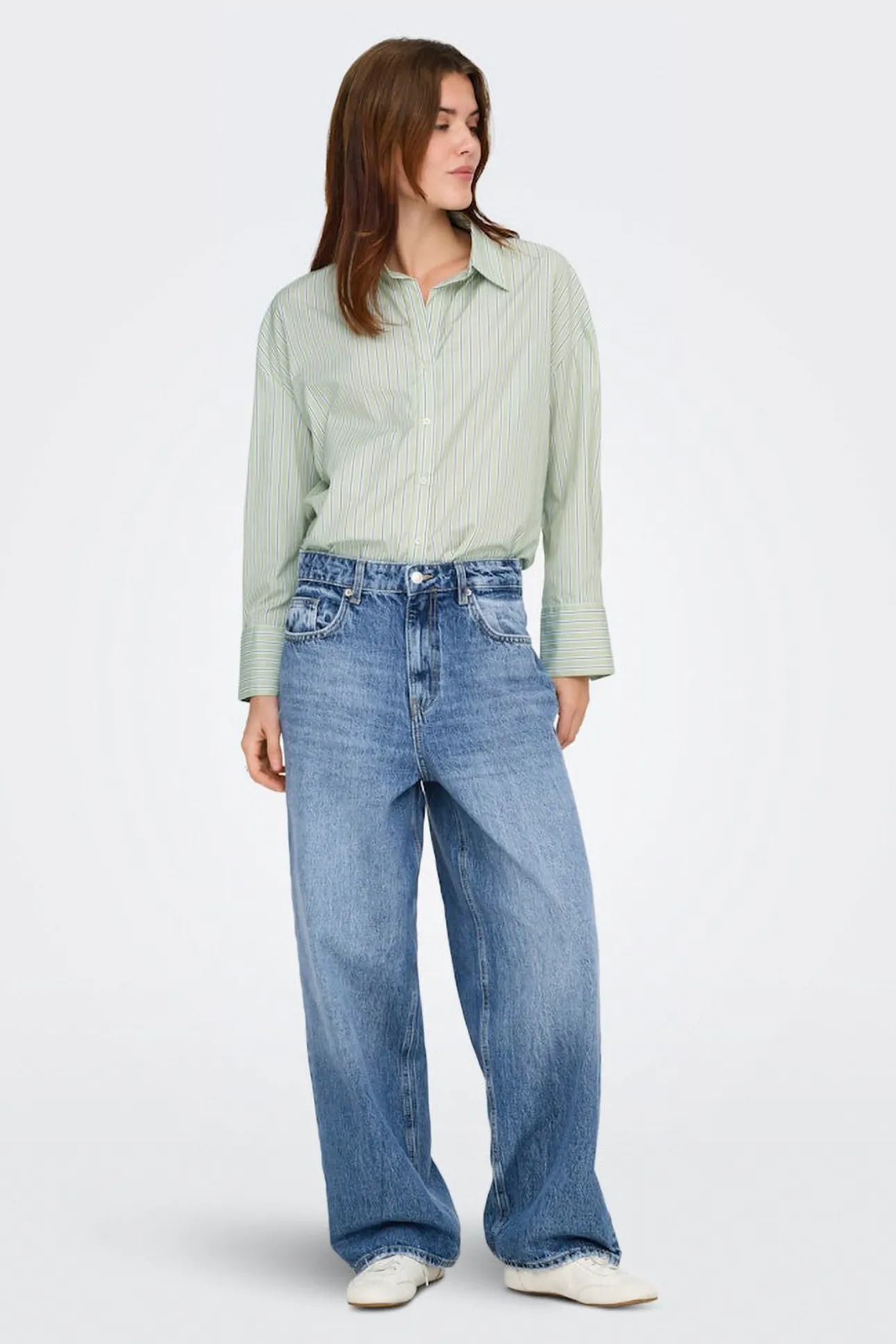 – Manga larga acabada en puño con botón.