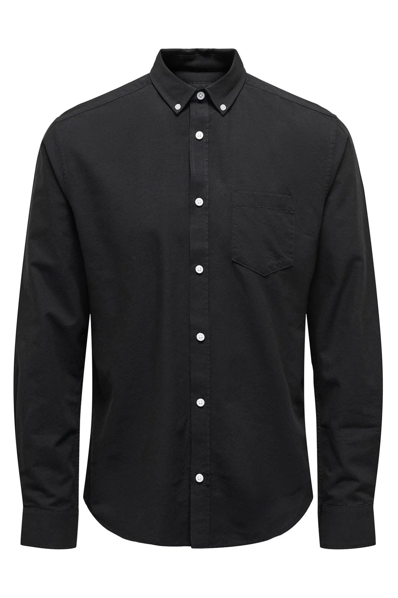 – Corte regular, cuello clásico y cierre de botones delantero.