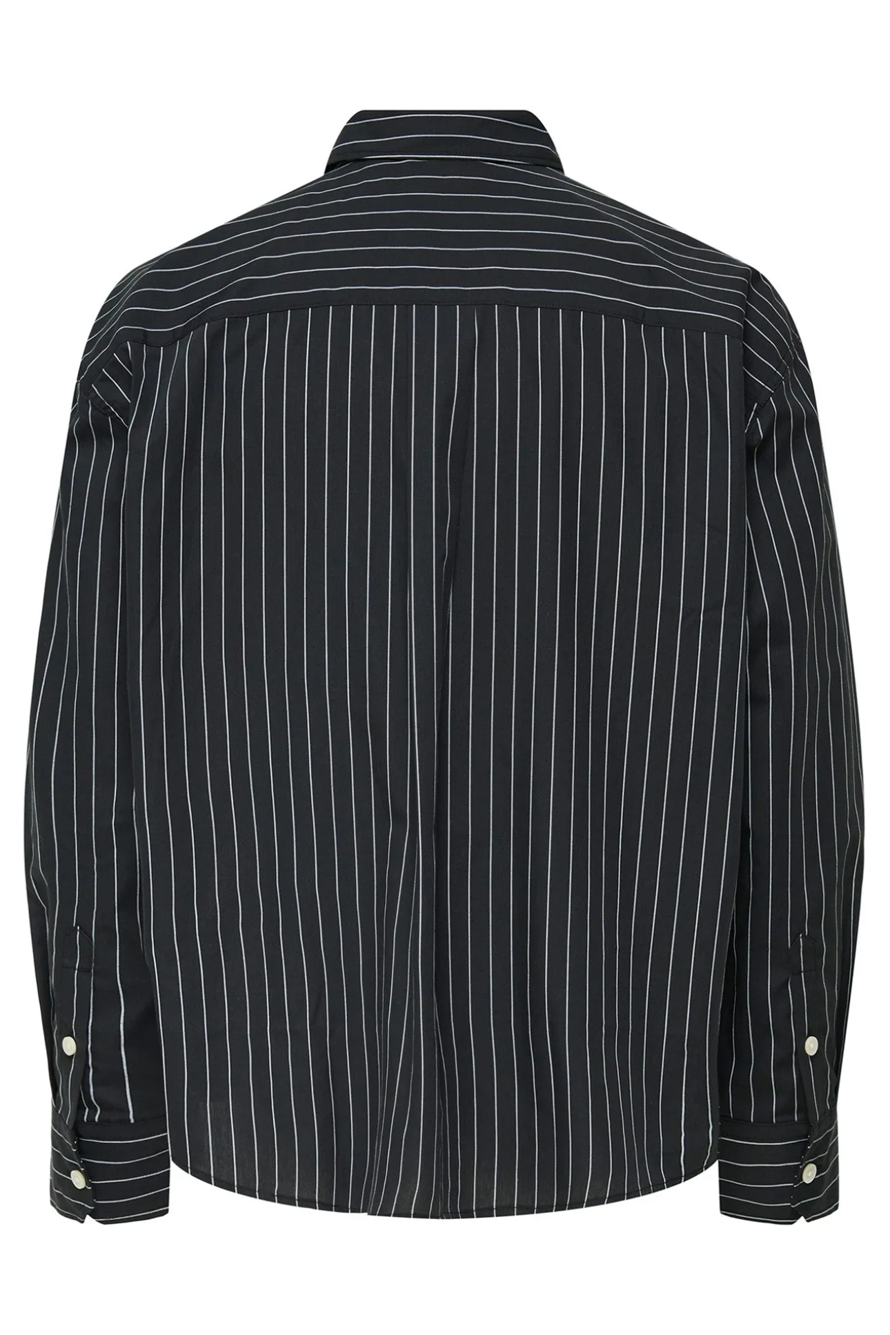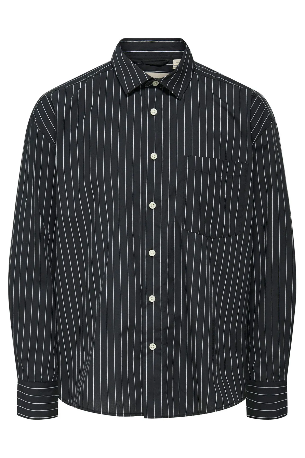 – Corte amplio, cuello clásico, cierre de botones delantero, estampado de rayas y bolsillo frontal superior.