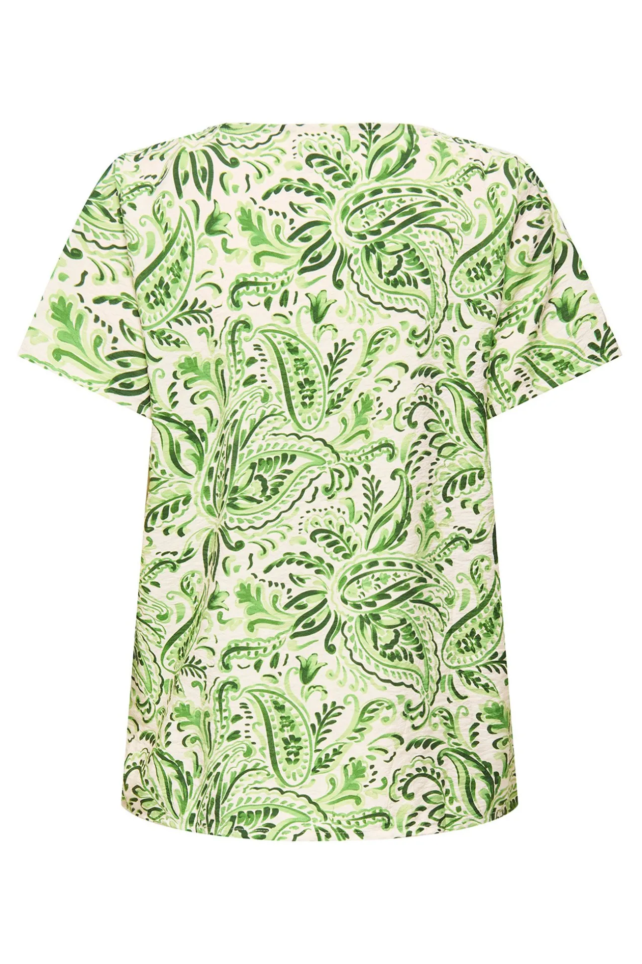 – Corte amplio, cuello redondo y estampado floral.