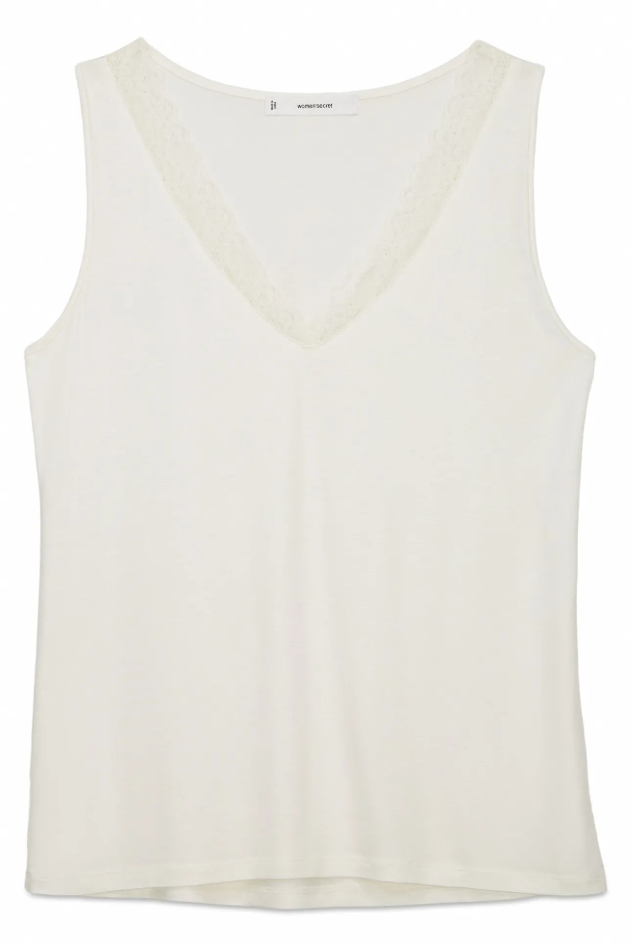 – Corte entallado y escote en pico con detalle de encaje a tono.