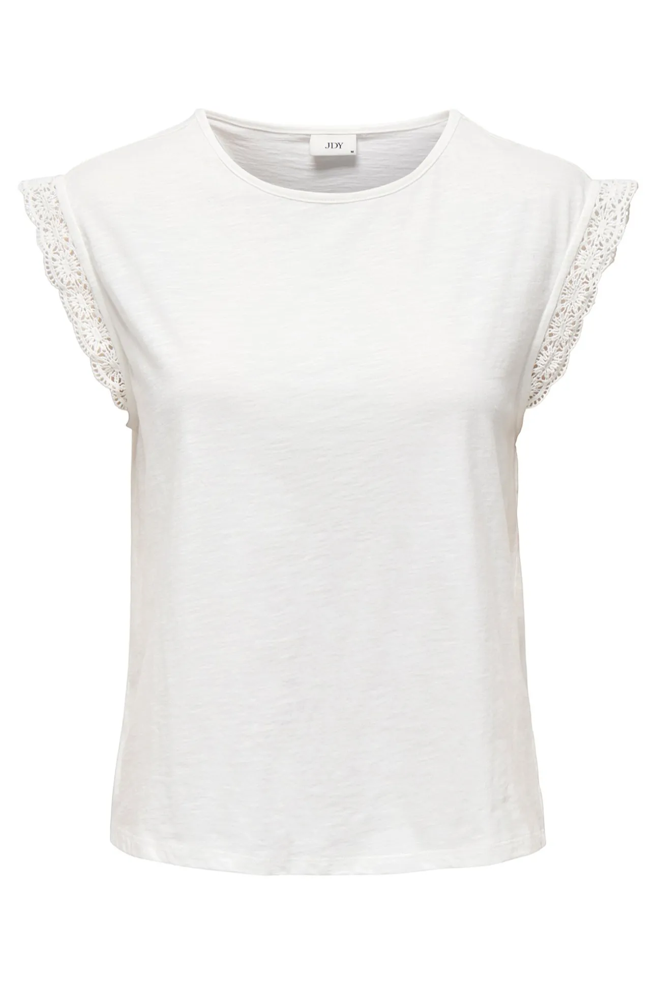 – Corte recto y suelto, cuello redondo y detalle de encaje en los hombros.