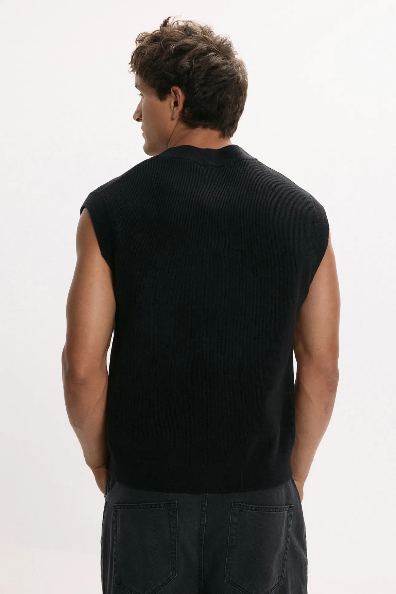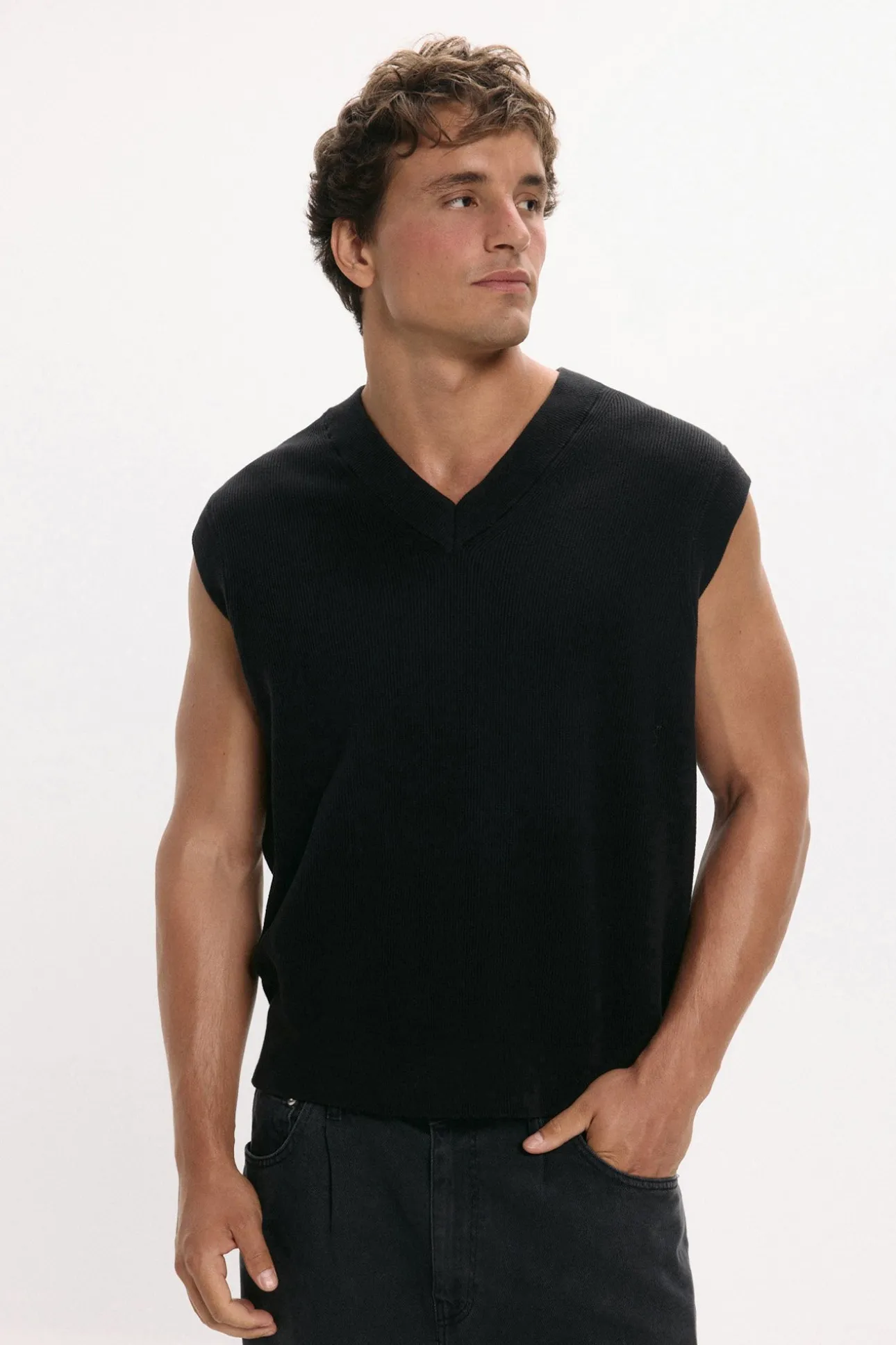 – Corte amplio, cuello pico y mangas y escote con borde acanalado.